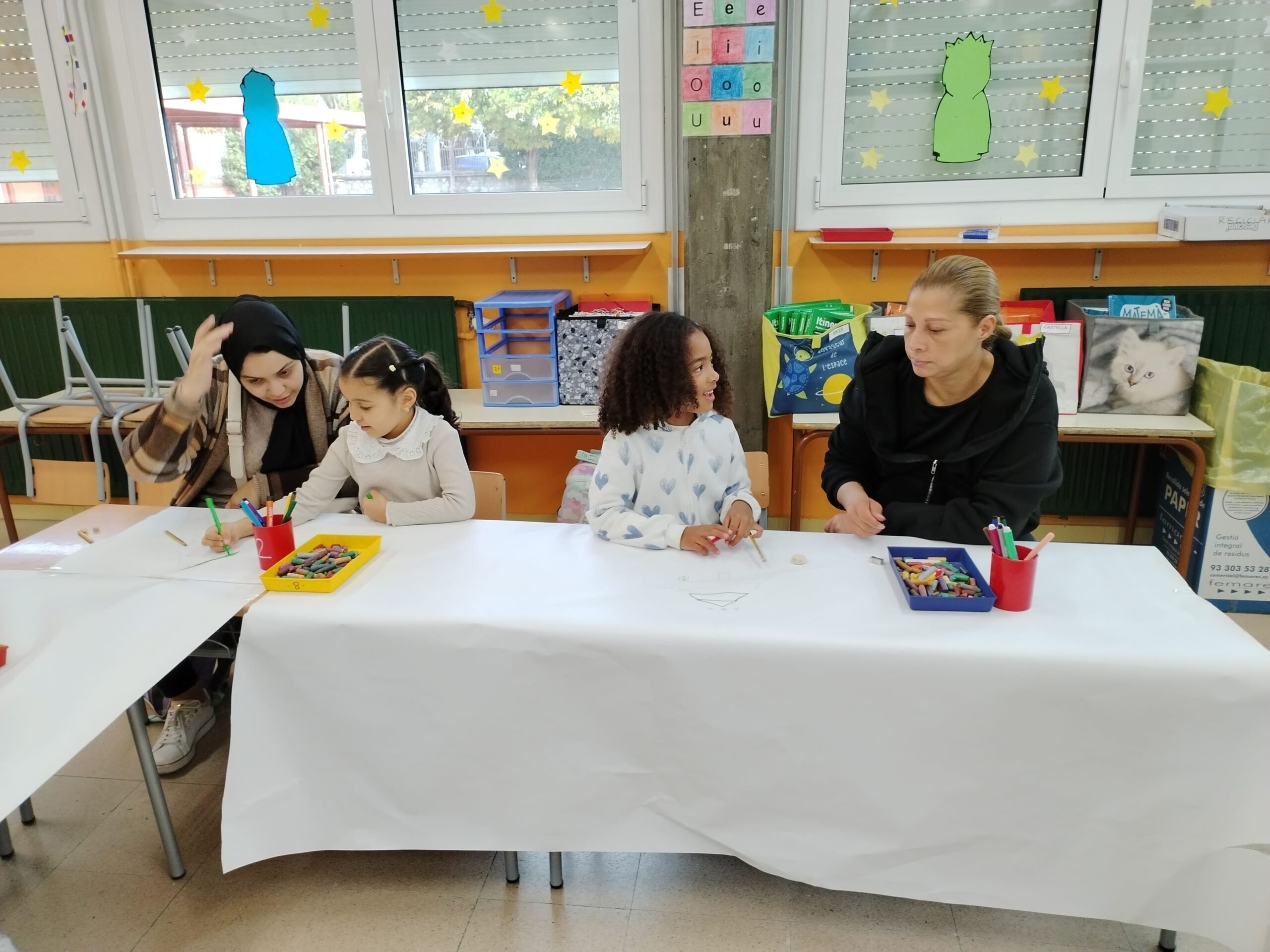 Hem passat una bona estona pares i fills dibuixant conjuntament i utilitzant diferents materials com ceres, retoladors, llàpissos de colors, etc.