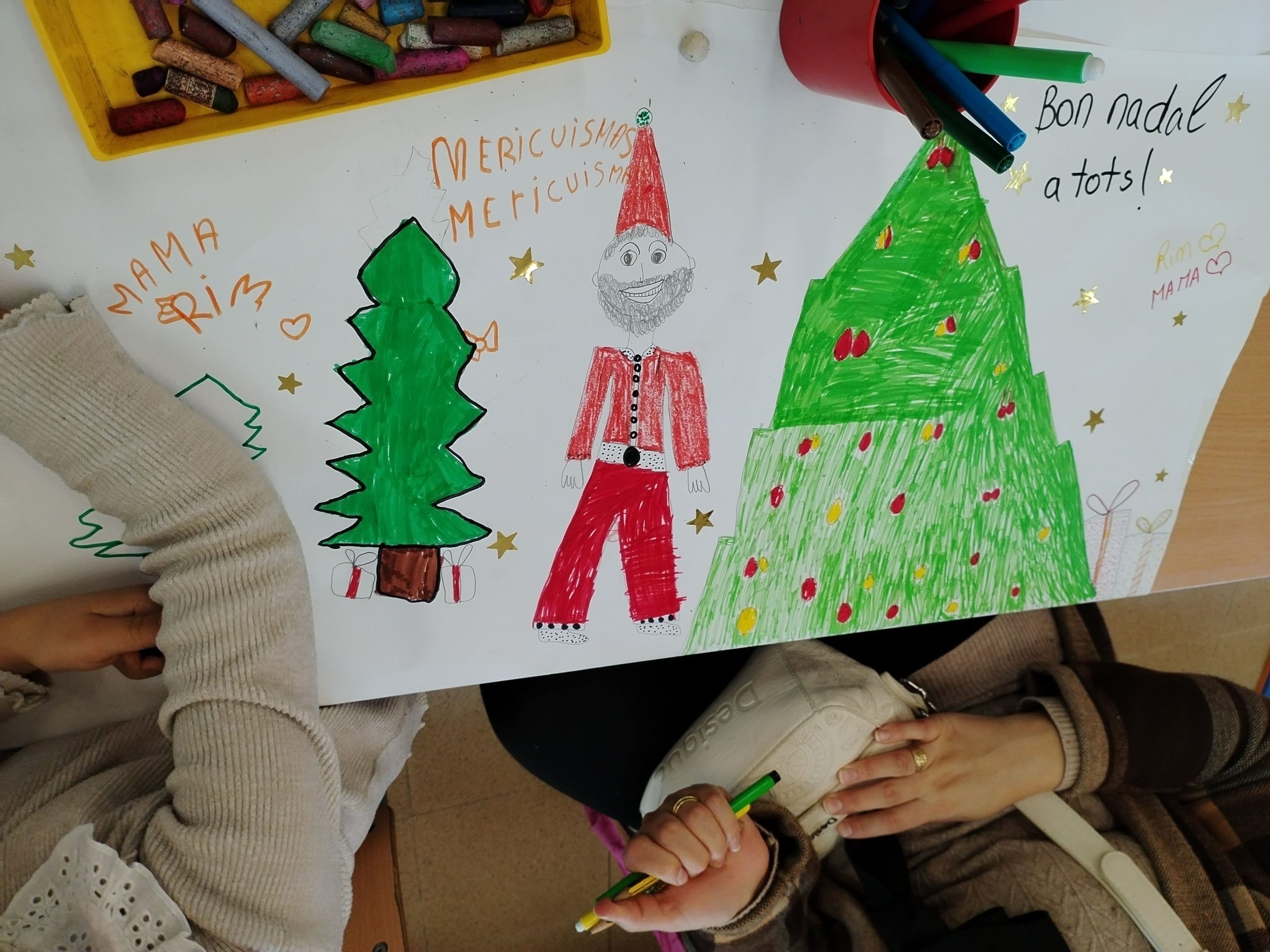 Aquest mes de desembre els pares i mares han vingut a pintar detalls de nadal juntament amb els seus fills. Tenim uns nens que són uns artistes, però els pares més.