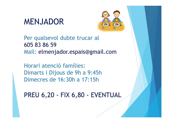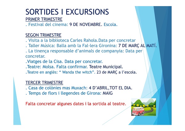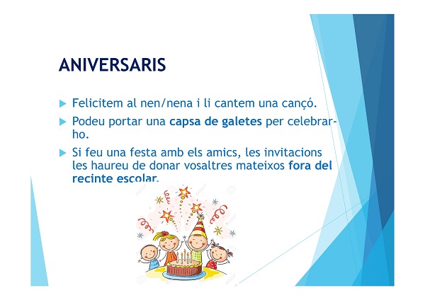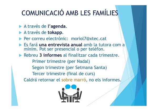 Aquí teniu un petit resum de la informació que es va donar a la reunió d’aula.