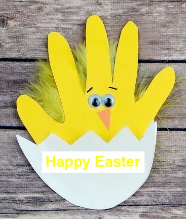 1) Fer un pollet amb la seva mà. Si no es té full de color groc, pugueu fer-lo en un full blanc i pintar-lo de groc.