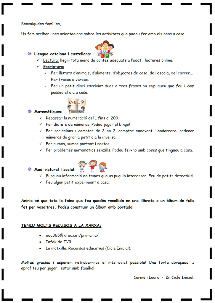 2n: Ànims i a treballar una miqueta… admin21/03/20 Carta deures confinament 2N Enllaços directes a la xarxa: