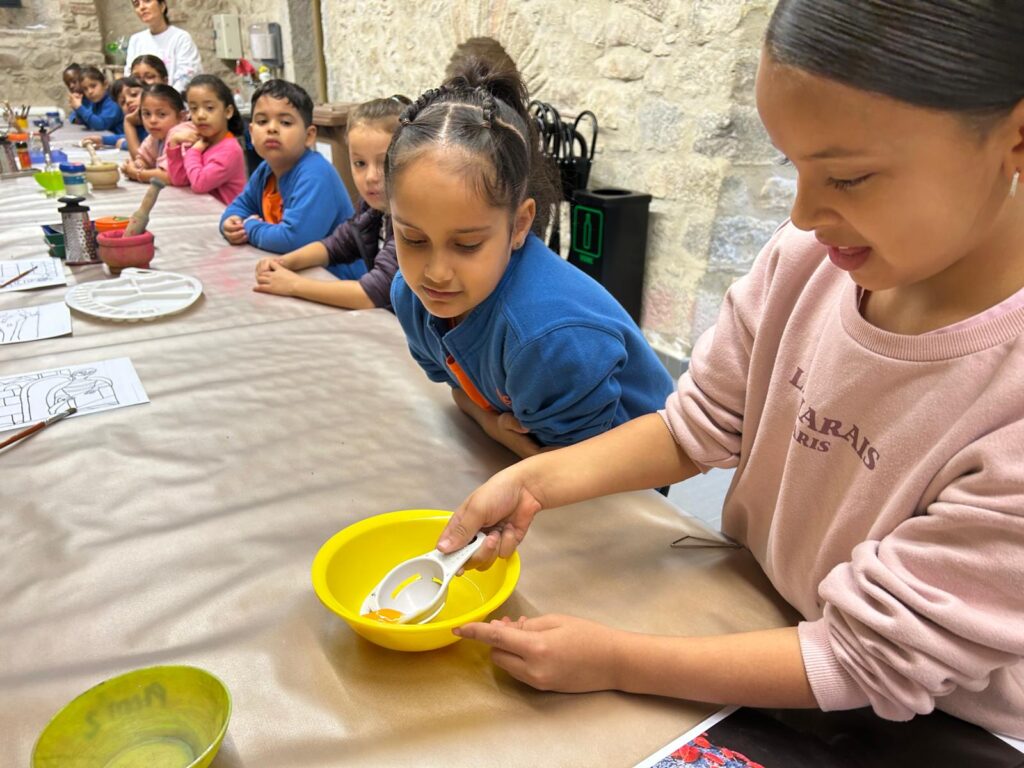 Després vam fer una activitat molt divertida, vam pintar sense pintura!…Vam utilitzar productes naturals tot barrejant-los amb una mica d’aigua i un rovell d’ou que actua com a aglutinant del pigment. I es que vam aprendre que fa molts i molts anys s’utilitzava la tècnica del tremp d’ou per pintar!