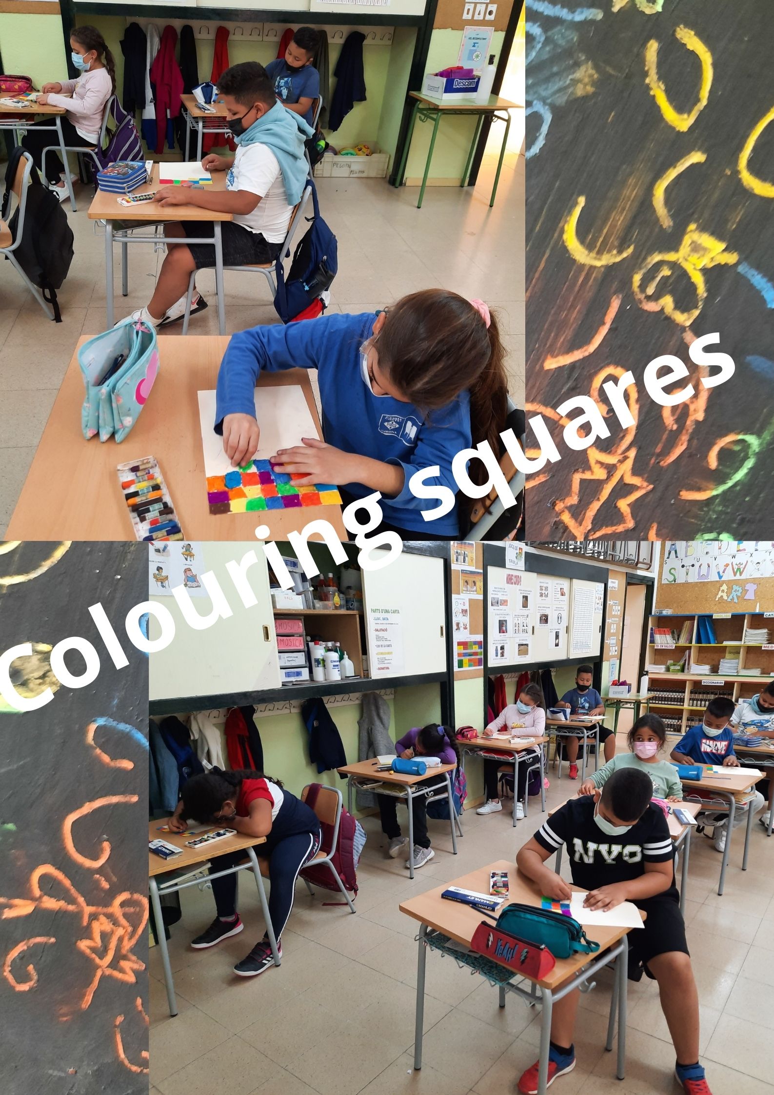 This month has been really colourful and we have done different works of art dealing with October Girona’s festivities with 3rd  A and 3rd B classes:
