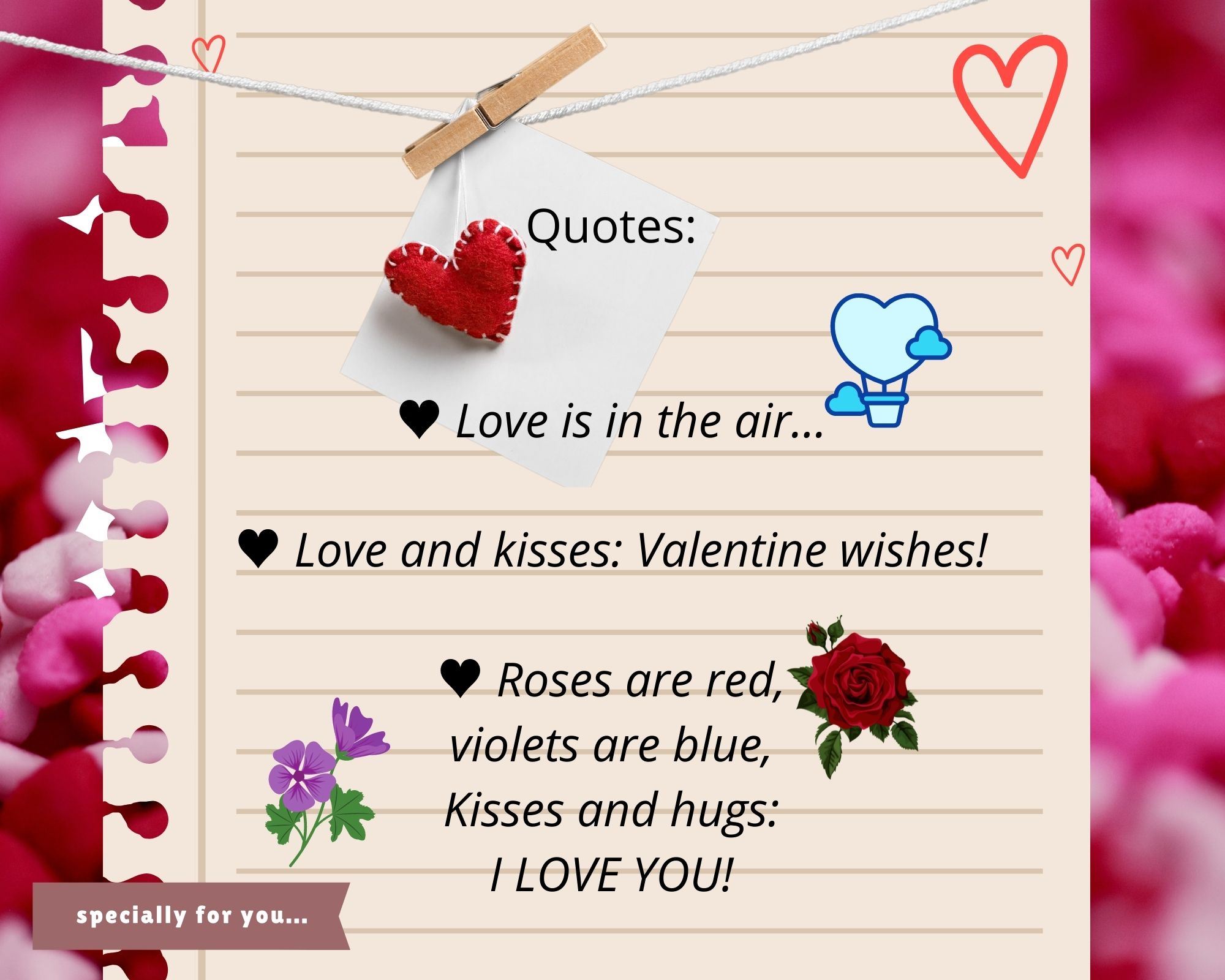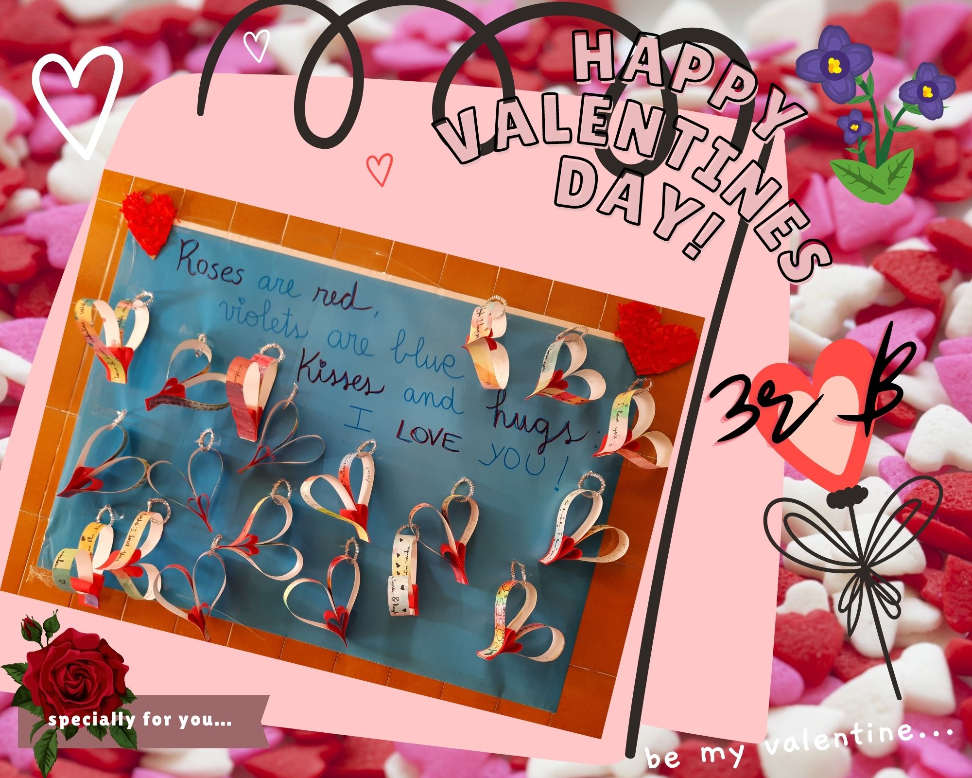 Roses are red, violets are blue, Kisses💋  and hugs: I LOVE YOU! ( Les roses són vermelles, les violetes blaves, petons i abraçades: T’estimo!)