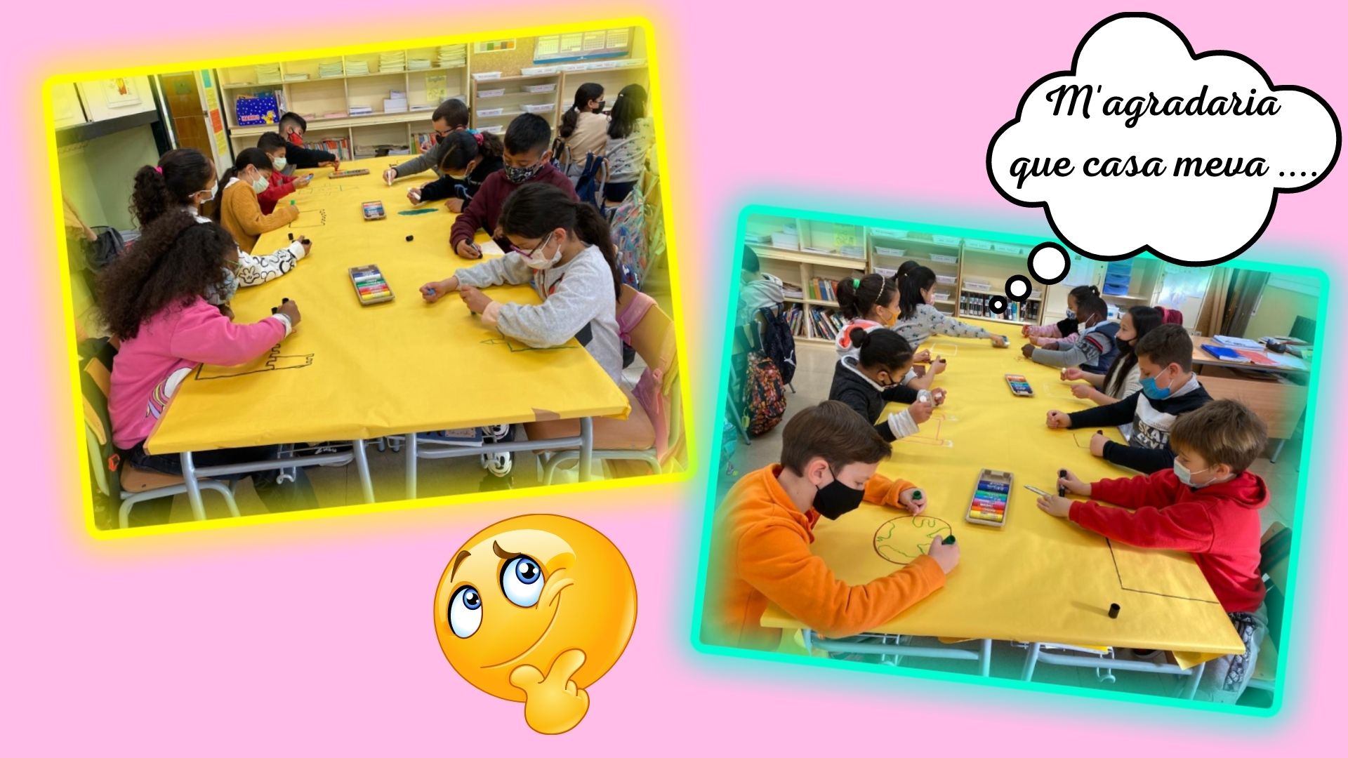 A continuació, ens ha proposat de fer volar la nostra imaginació i dibuixar la casa on ens agradaria viure. Van sortir cases ben originals!! Després, cada nen ha explicat la casa que ha dibuixat.