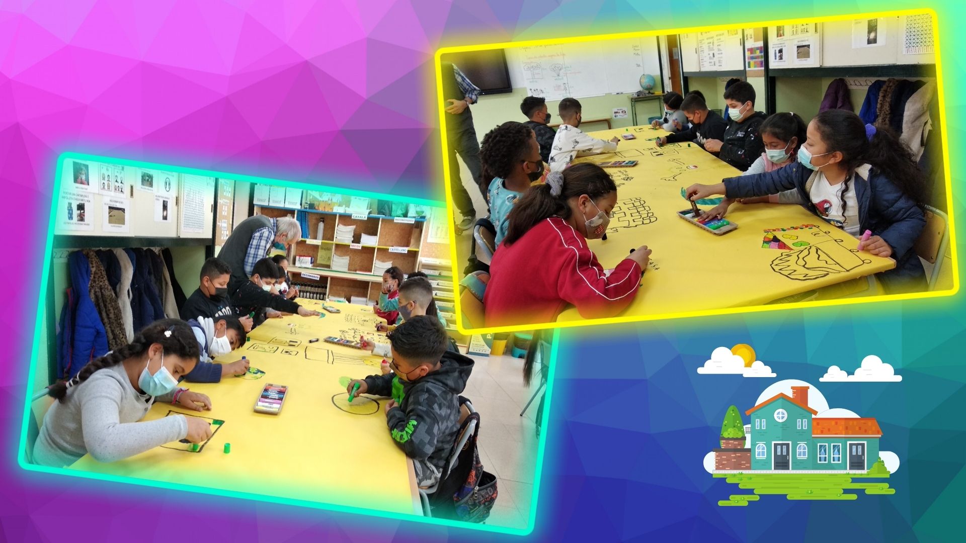 En Ferran, un senyor molt simpàtic, ens ha explicat un conte d’un poble on al principi totes les cases eren exactament iguals i que de mica en mica es transformen en cases completament diferents les unes de les altres.