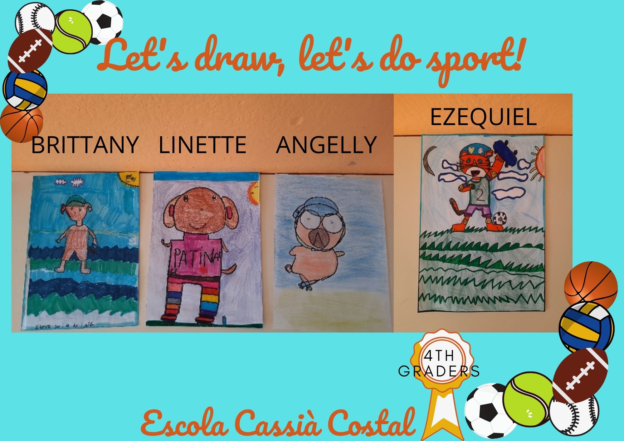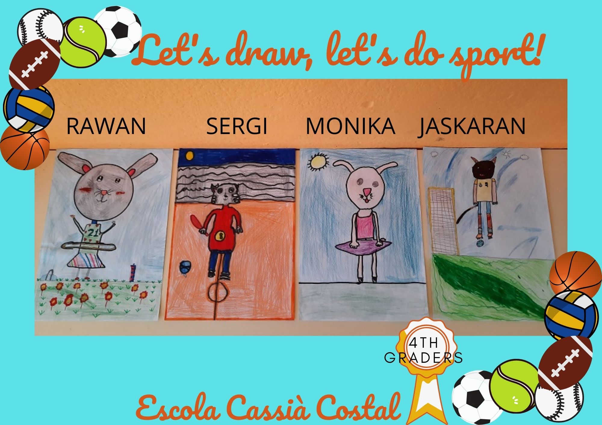 Els nens i nenes de 4t han participat al Concurs Cultural Esportiu, una activitat interdisciplinar amb l’àrea d’educació física, fent un dibuix durant algunes classes de plàstica en anglès. Hem decidit fer la Modalitat de MASCOTA.