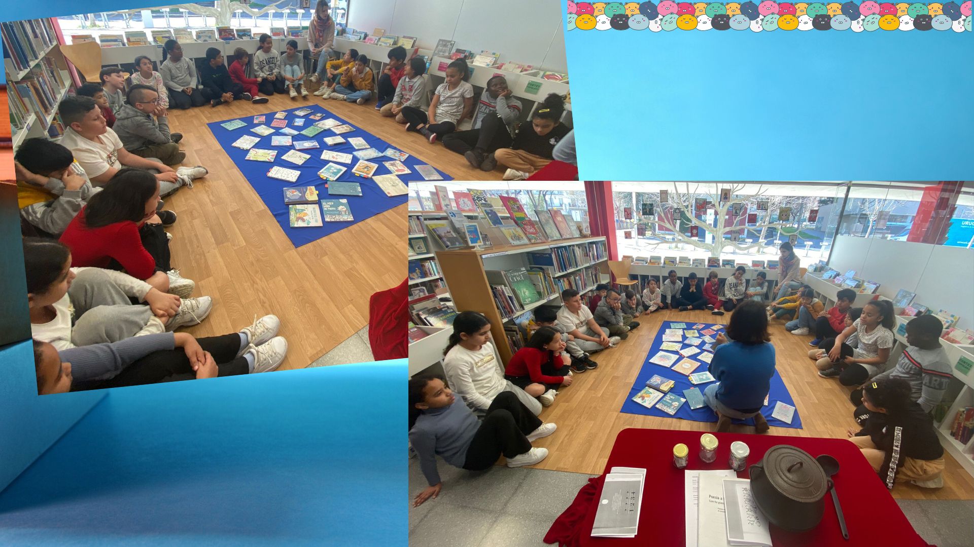 Els nens i nenes de 4t hem anat a la biblioteca Ernest Lluch a fer un taller de poesia. La Júlia ens tenia preparada una recepta de cuina ben original per fer poesia. I és que per fer una bona poesia cal posar dins una olla: una mirada poètica, música, ritme i rima i una mica de pols de l’emoció i de la imaginació. Cal posar-ho a foc lent i remenar-ho de tant en tant amb un cullerot perquè no es cremi.