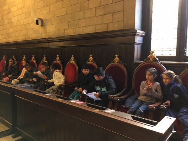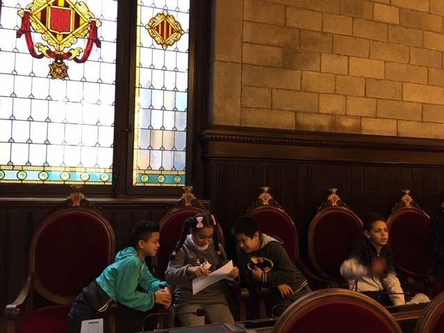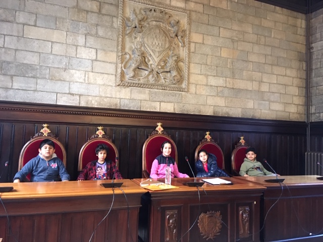 Divendres 14 de febrer vam visitar l’ajuntament de Girona. Ens vam trobar a la senyora alcaldessa i ens férem una foto amb ella. A la Sala de Plens vam seure a les butaques on seuen els nostres representants polítics. A més, vam jugar a fer de polítics fent interessants propostes de millora per la ciutat.