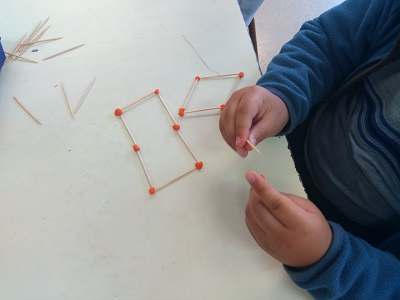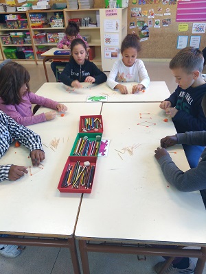 A les classes de primer estem treballant les figures geomètriques. Amb plastilina i escuradents hem construït triangles quadrats, rectangles, cercles i circumferències.