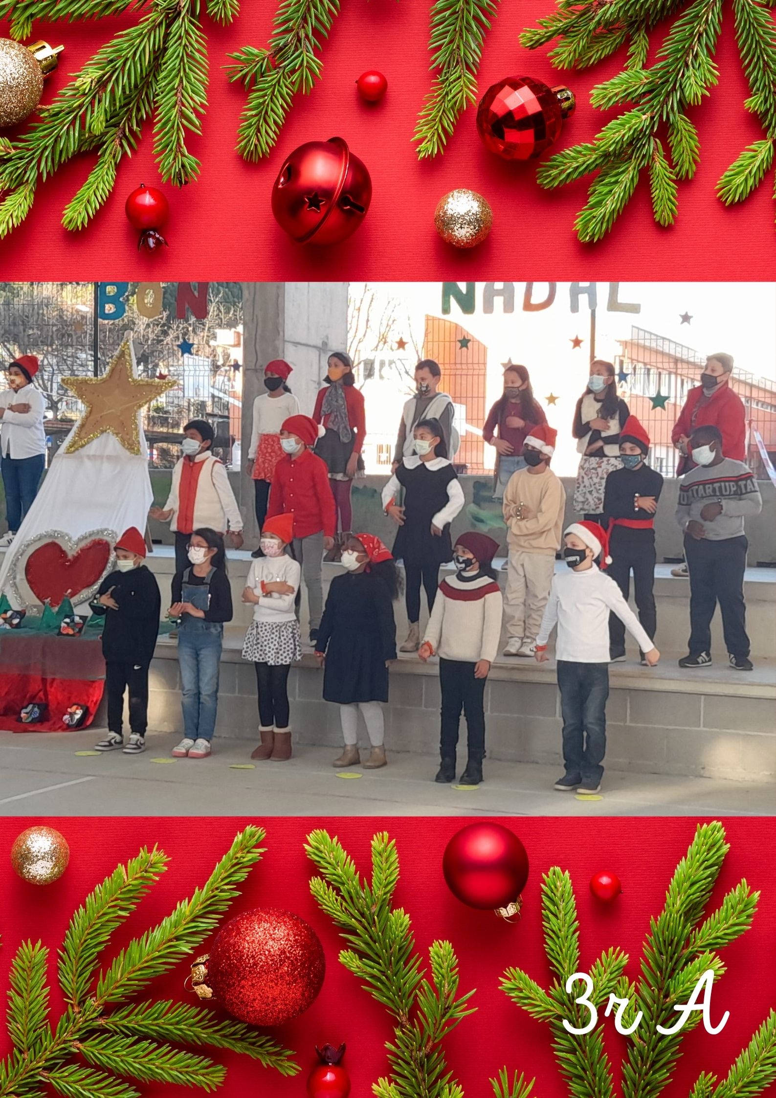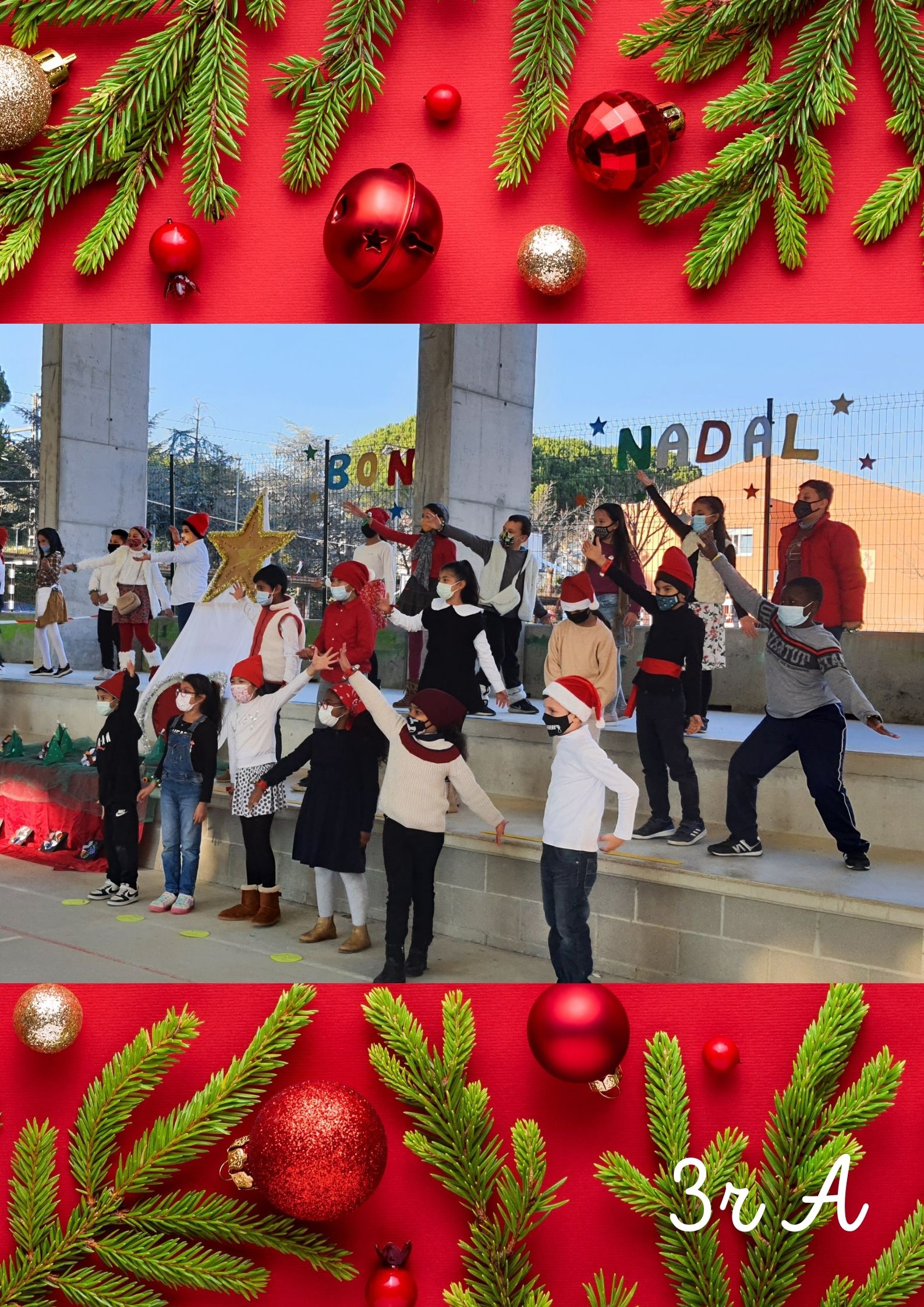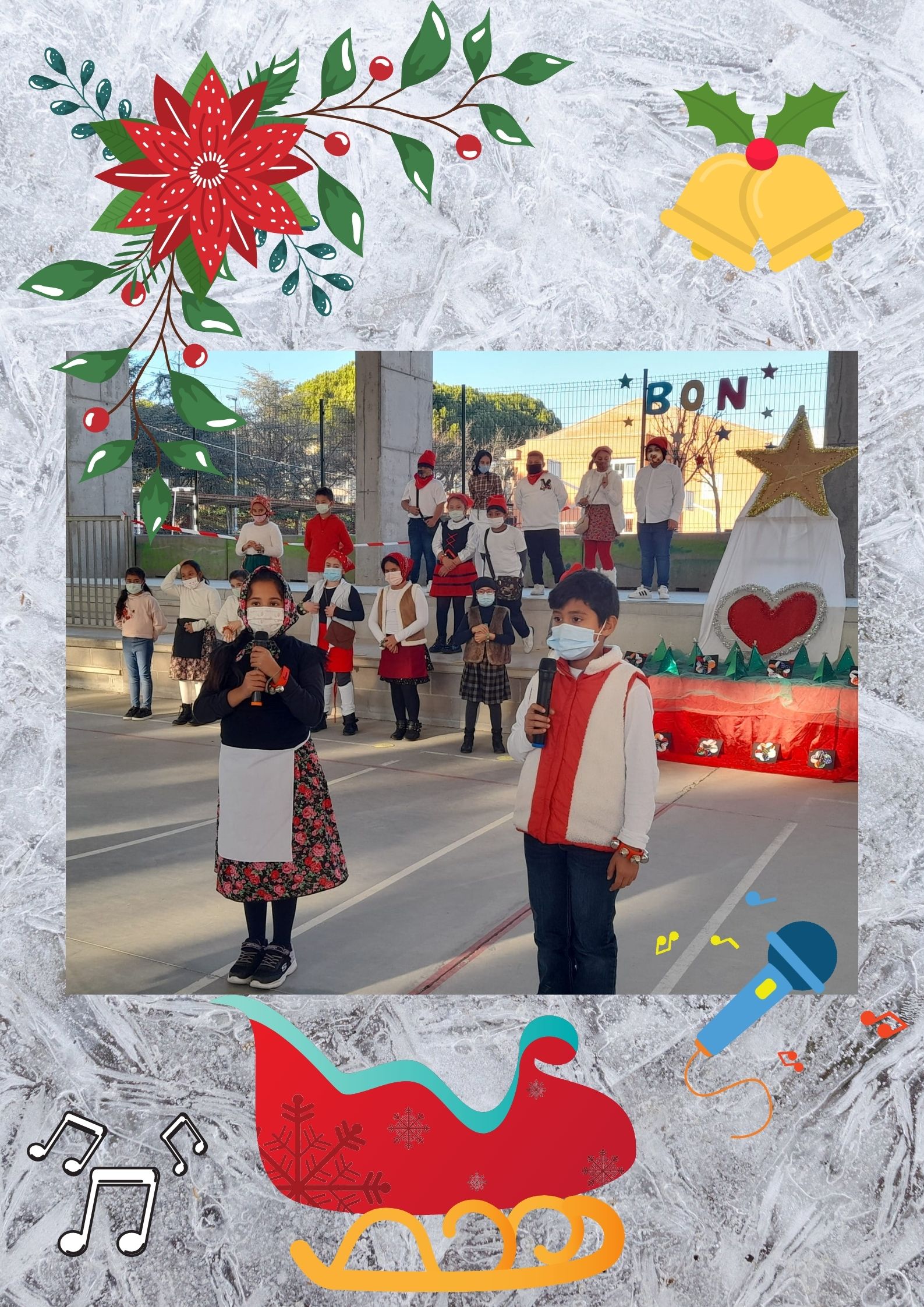 Primer de tot, van cantar la cançó “EL TRINEU” tot fent dringar els cascavells. Després, van cantar una cançó en anglès anomenada “CHRISTMAS MAKES ME SING! “ i finalment, van recitar el poema “POSTAL DE NADAL” d’Isabel Barriel.