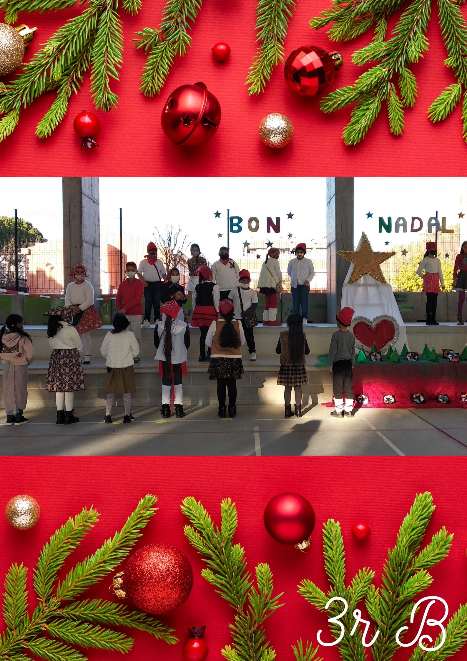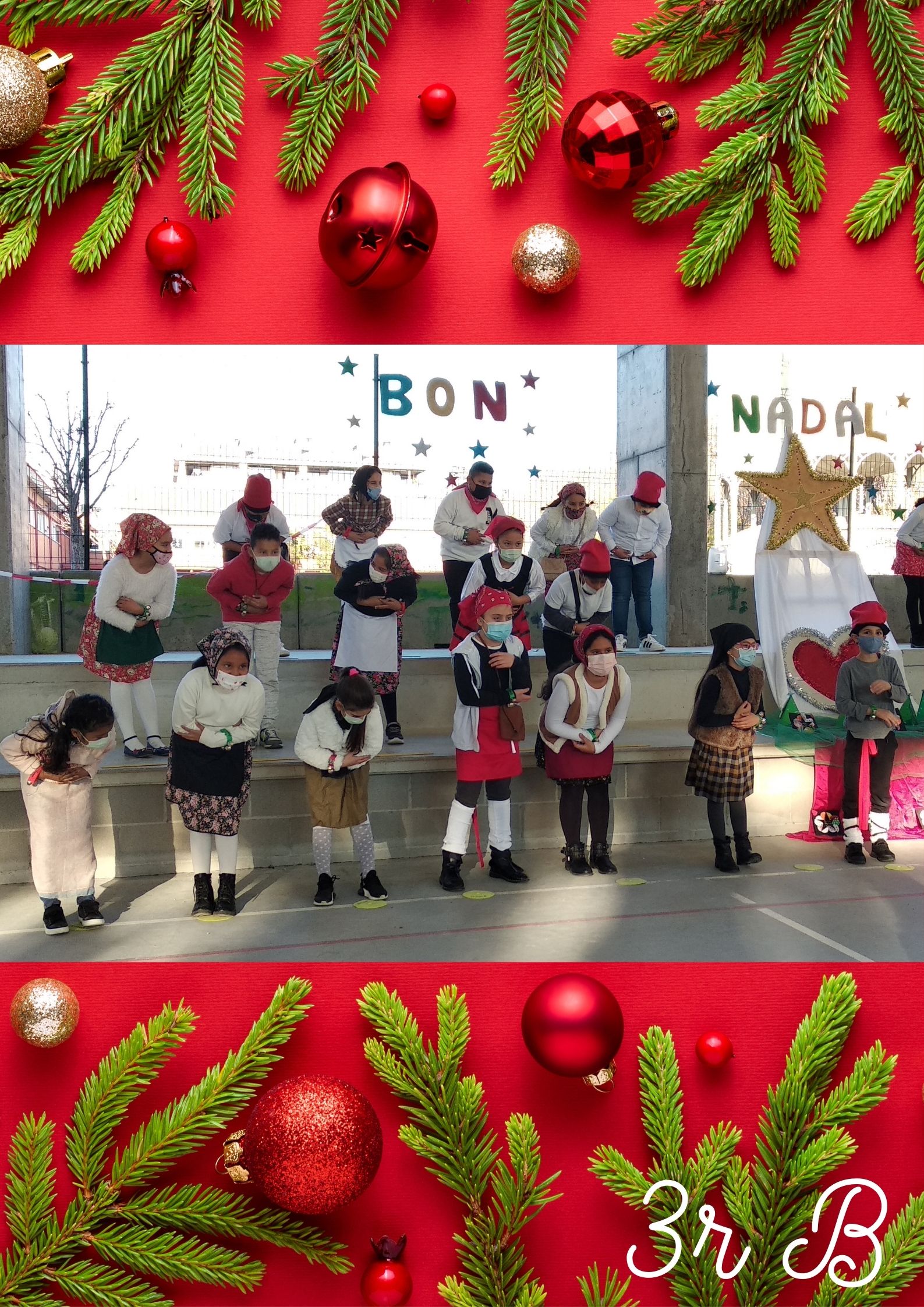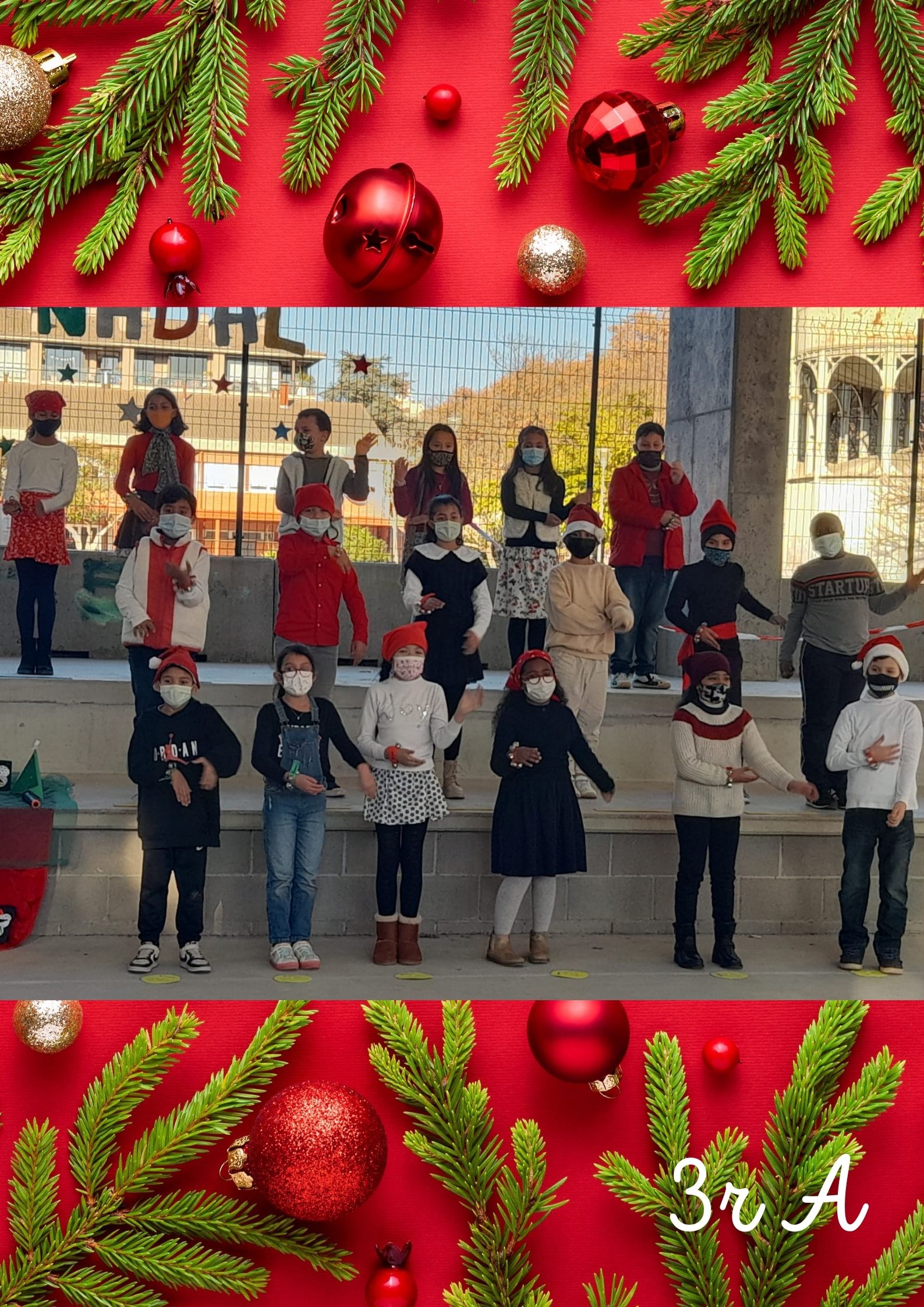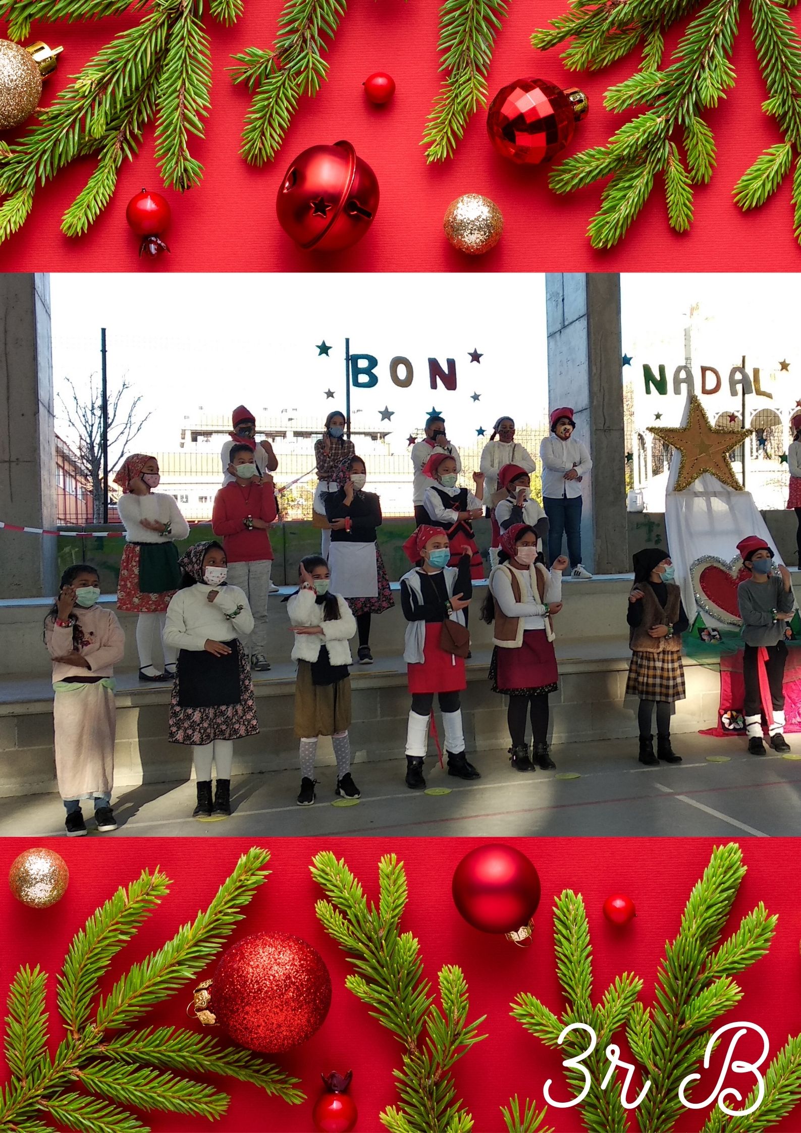Primer de tot, van cantar la cançó “EL TRINEU” tot fent dringar els cascavells. Després, van cantar una cançó en anglès anomenada “CHRISTMAS MAKES ME SING! “ i finalment, van recitar el poema “POSTAL DE NADAL” d’Isabel Barriel.