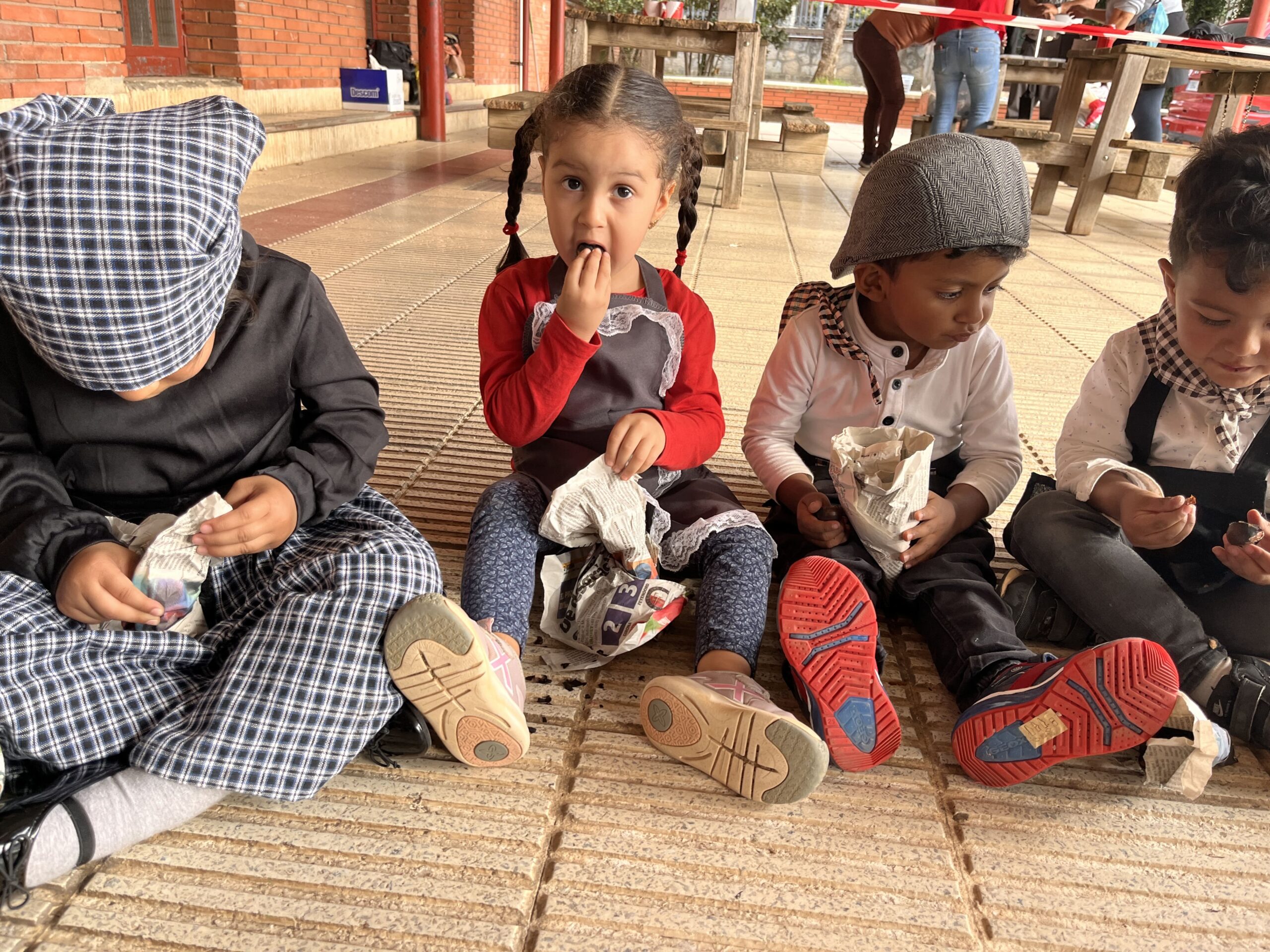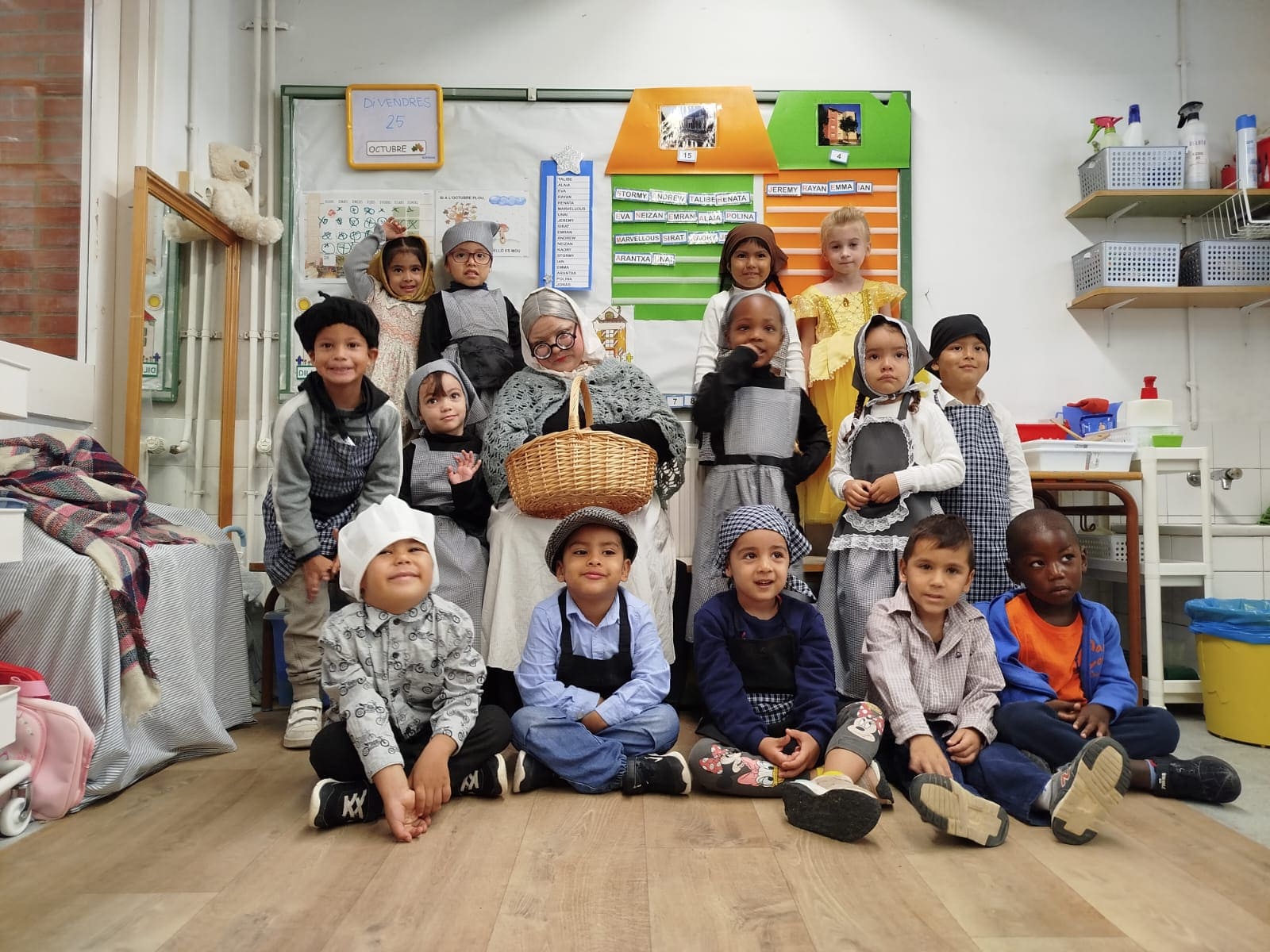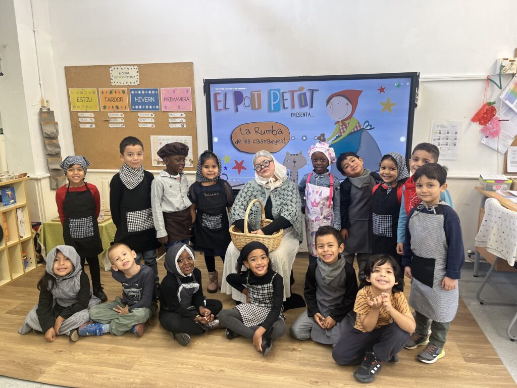 Per celebrar l’arribada de la tardor, hem fet moltes coses divertides com: tastar diferents fruites (codony, mandarina, poma i raïm de dos colors), donar la benviguda a la Castanyera, menjar castanyes i ballar danses, les quals s’han treballat a l’hora de música.