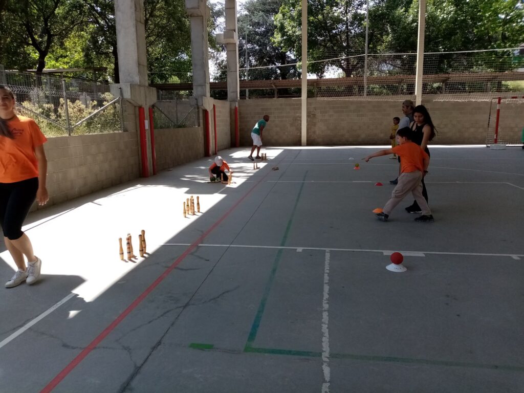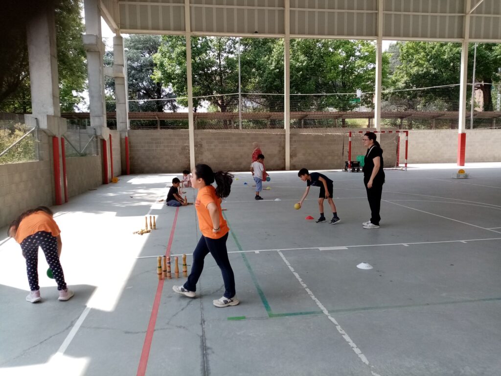 Es va organitzar un circuit  de jocs per equips.  Van jugar a : bitlles catalanes, a Nemo,  a  papallona  i a touching ball.