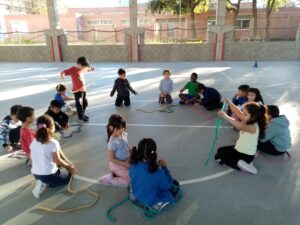 Hem continuat treballat temes com el cos humà, els bons hàbits saludables i les emocions sense oblidar-nos de les normes i les rutines a la nostra àrea d’Educació física.