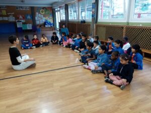 El passat dia 16 i 26 de gener les nenes i els nens de primer vam fer una activitat anomenada “Hola: el meu cos”. Aquesta activitat forma part del programa de Recursos Educatius, gestionat pel servei municipal La Caseta-Serveis Educatius de l’Ajuntament de Girona. Es va tractar d’un taller que es va realitzar a l’hora de la classe d’Educació Física. Una especialista en dansa ens va organitzar diversos jocs i activitats, tant individuals com col·lectius d’expressió i comunicació corporal a través del moviment. A més de ballar, saltar i fer equilibris amb els diferents ritmes musicals al llarg de la sessió, també ens va fer algunes activitats més relaxades i tranquil·les que ens van agradar molt. Ens ho vam passar genial!