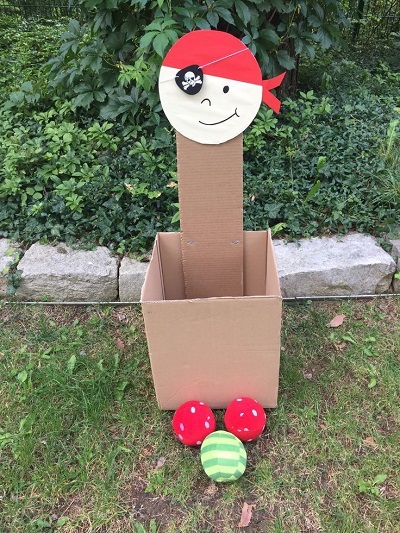 Material: alguna caixa que tingueu a casa de cartró o plàstic, més aviat que sigui mitjana. Pilotes toves i si no en teniu, podeu agafar un mitjó i utilitzar-lo circunstancialment per fer llançaments a la vostra caixa. Podeu decorar després la caixa com més us agradi.