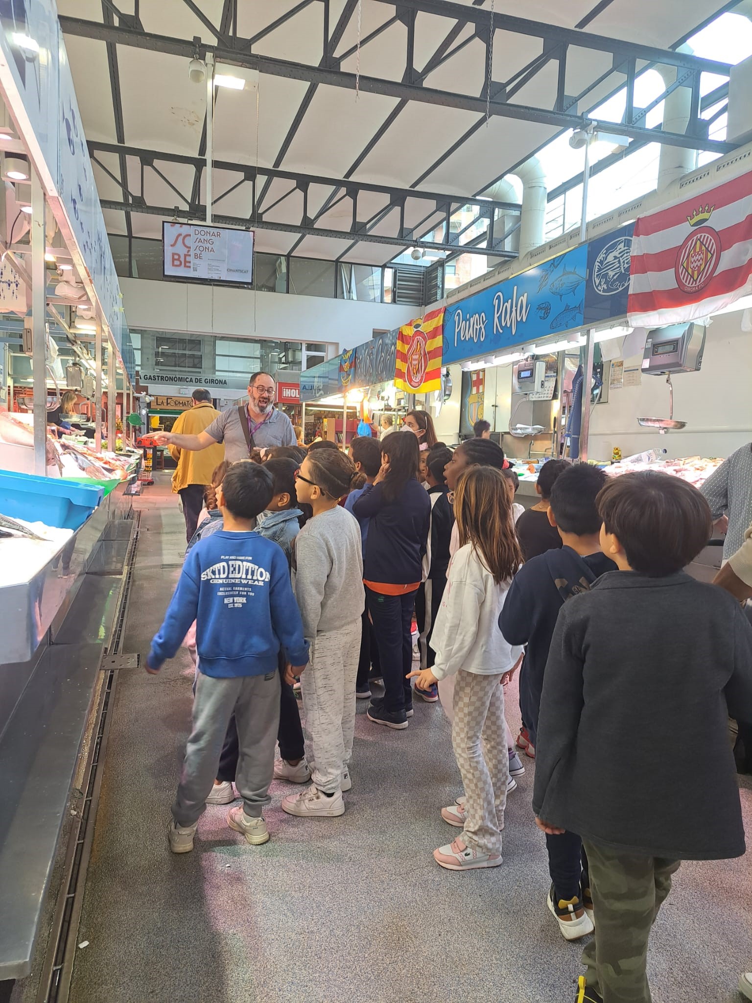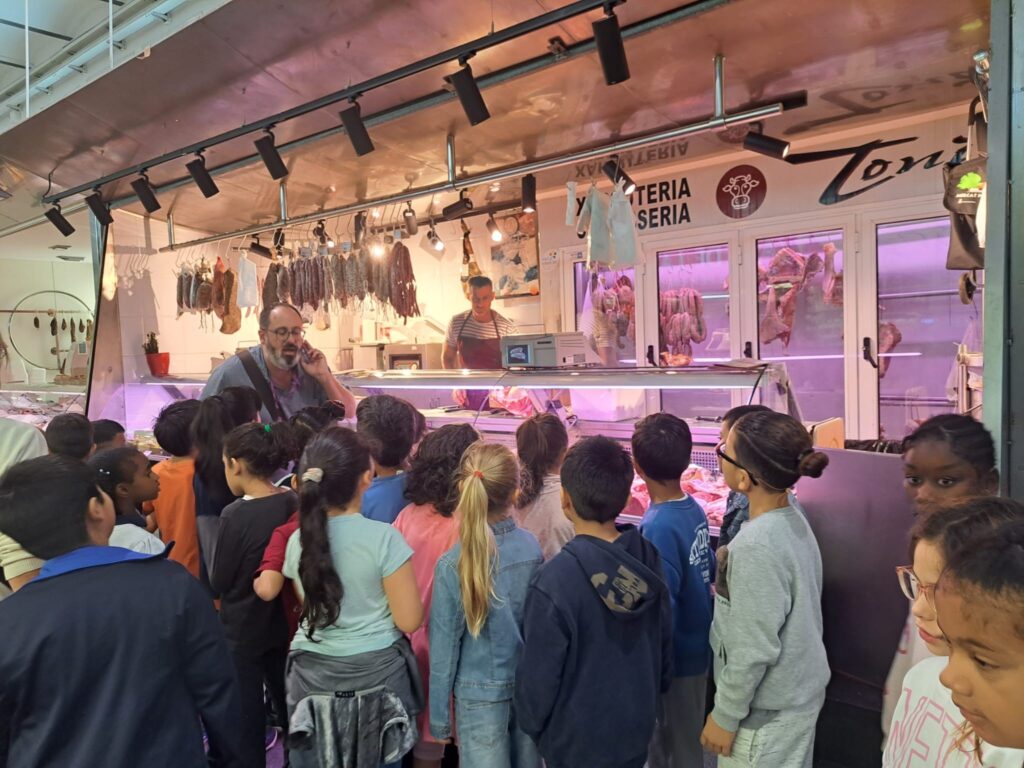 Vam conèixer en Jordi que ens va explicar la història del mercat del Lleó i sabem que l’any que ve es compliran 80 anys des de la seva inauguració! Vam fer una ruta per dins del mercat on vam veure parades de tot tipus: fruiteries, peixateries, llegums, fruits secs, floristeries, fleques, carnisseries… vam conèixer en Toni que ens va ensenyar com produïen les hamburgueses i segur que estan boníssimes! També vam veure parades especialitzades en carn de pollastre, de vedella, de poltre…