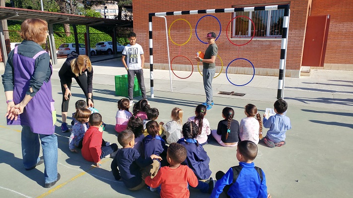 Els nens i nenes contàvem quantes vegades havia passat el cèrcol pel seu cos. L’activitat es va realitzar durant el pati del dia 3 d’abril i en alguna de les sessions d’educació física de primària.