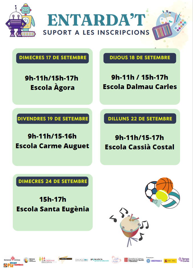 Si necessiteu ajut per fer les inscripcions podeu anar a qualsevol d’aquestes escoles: