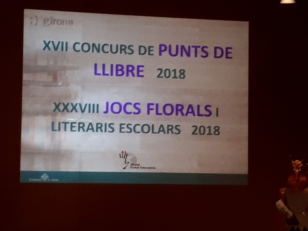 L’Ajuntament de Girona ens va convidar a anar a l’Auditori a l’entrega de premis del XVII Concurs de Punts de Llibre i del XXXVIII Jocs Florals i Literaris Escolars perquè estàvem nominats a la final. Estàvem molt nerviosos perquè no sabíem qui seria el guanyador o guanyadora ni en quina posició quedaríem.