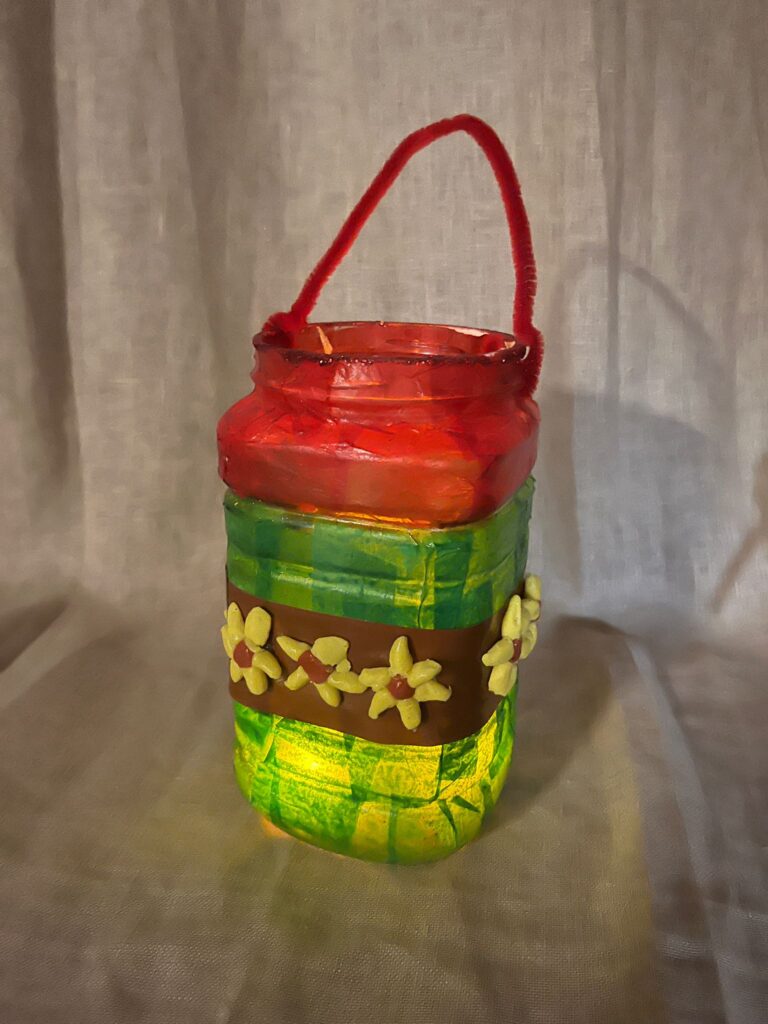 Els grups d’i5 hem fet un fanalet seguint els colors i elements que Gaudí va utilitzar en construir El Capritx (Cantàbria). Ajudats de les famílies hem fet el fanalet amb colors vermells i verds de base, i unes sanefes fetes de gira-sols de plastilina.