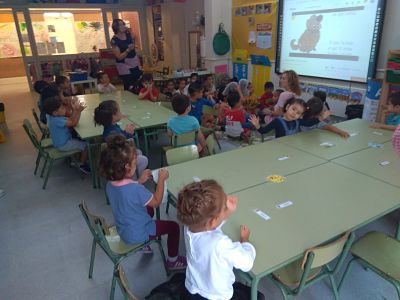 Per tal de celebrar-ho, ens hem agrupat les dues classes i hem cantat, tots junts, la nostra cançó, que podeu escoltar aquí: