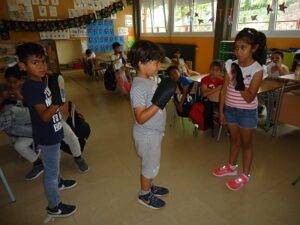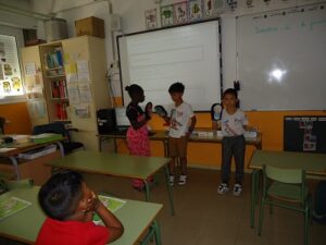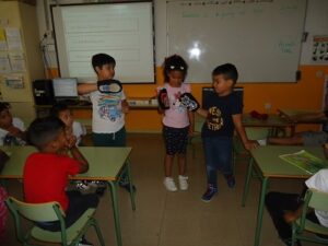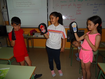 We have seen the story of the English book, “Little Red Riding Hood”, a short adaptation, and we acted it out in front of the mates. We have had a lot of fun and by the way we have learned and practiced the unit sentences and the vocabulary.