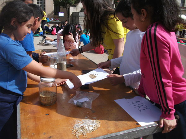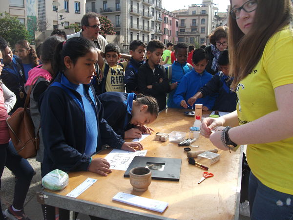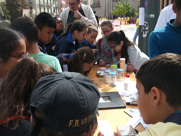 Aquest divendres els nens i nenes de 4t vam participar a la fira de la ciència que va tenir lloc a la Plaça 1 d’Octubre i a la de Josep Pla. Nois i noies de la universitat de Girona van preparar uns tallers de ciència per tal que els nens manipuléssim i penséssim sobre el perquè de les coses. N’hi havia molts!!! I moltíssims nens de diferents edats i escoles de Girona!!