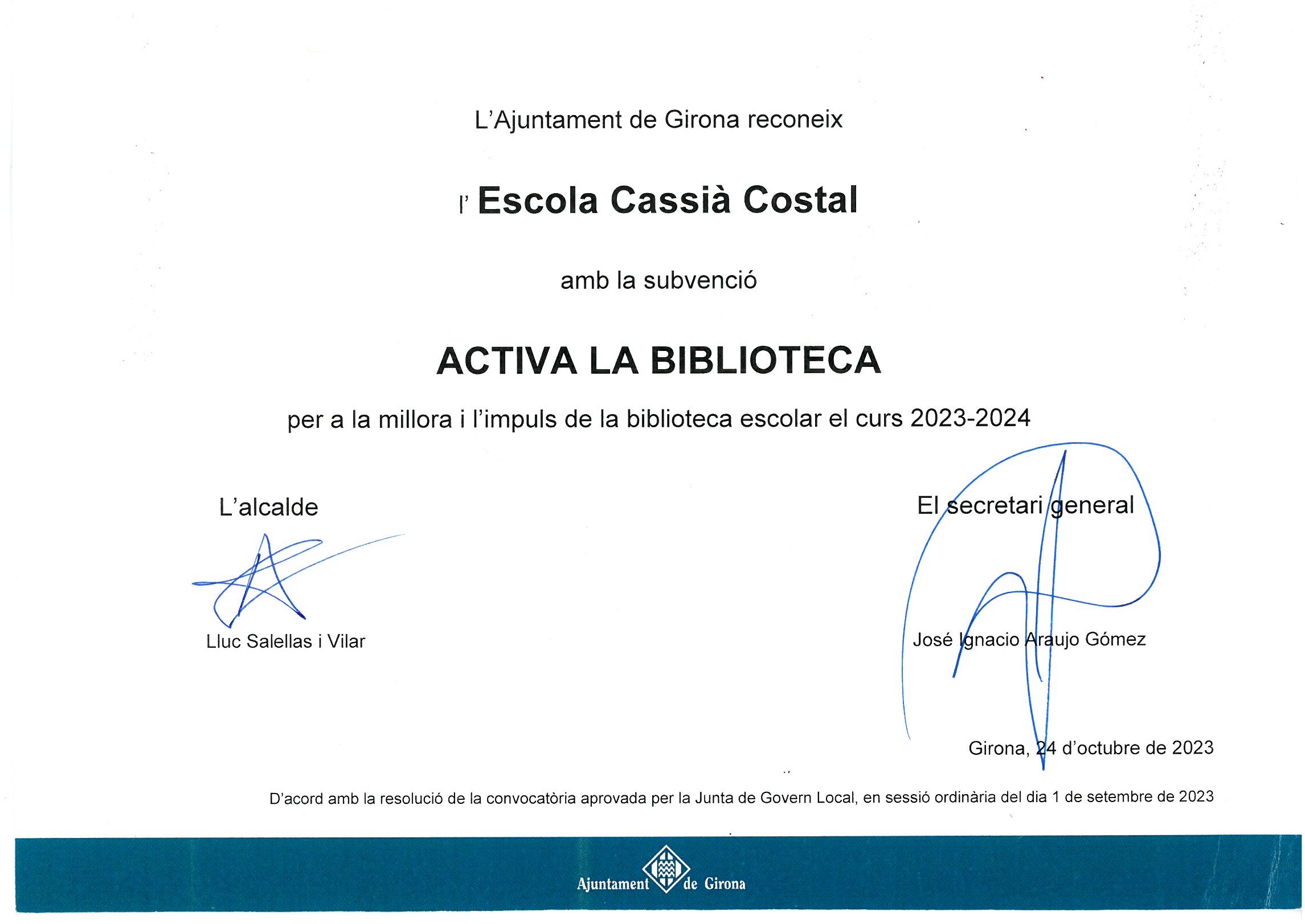 Aquest curs, ens hem tornat a presentar a la subvenció “Activa la biblioteca”, de l’Ajuntament de Girona i ens l’han donada.