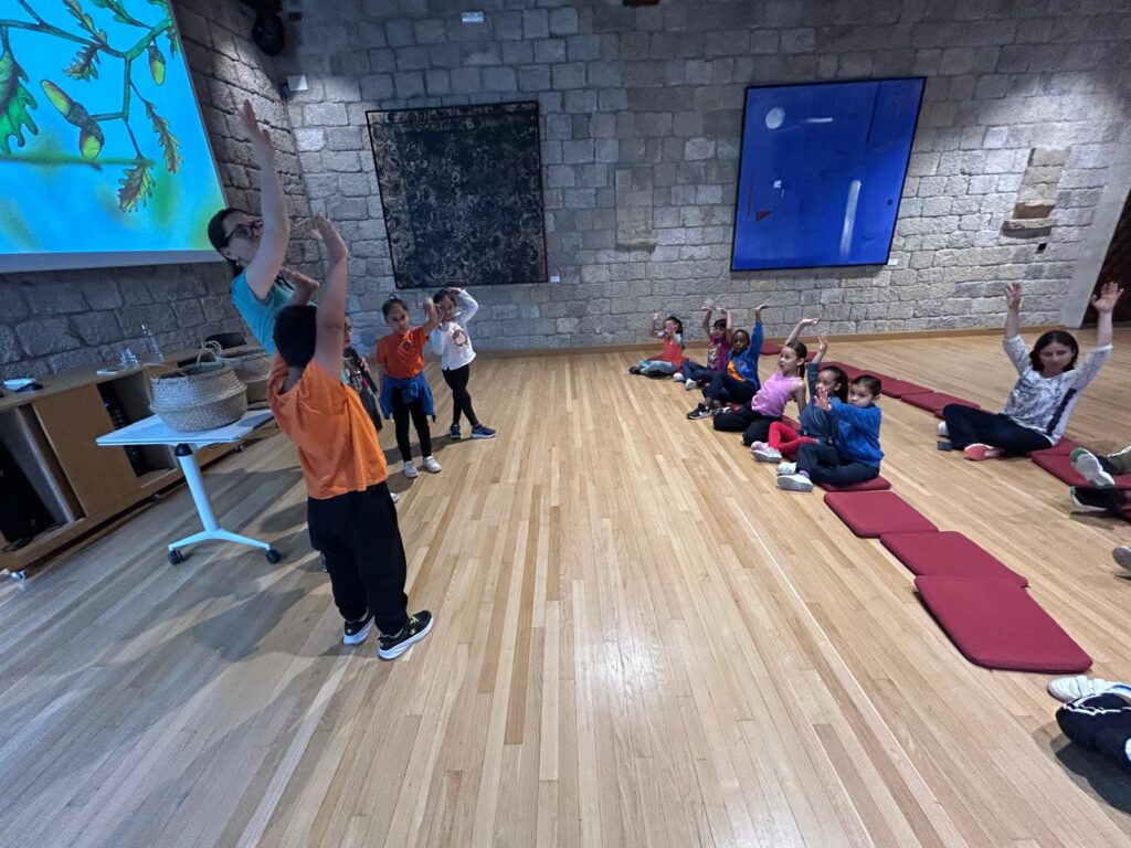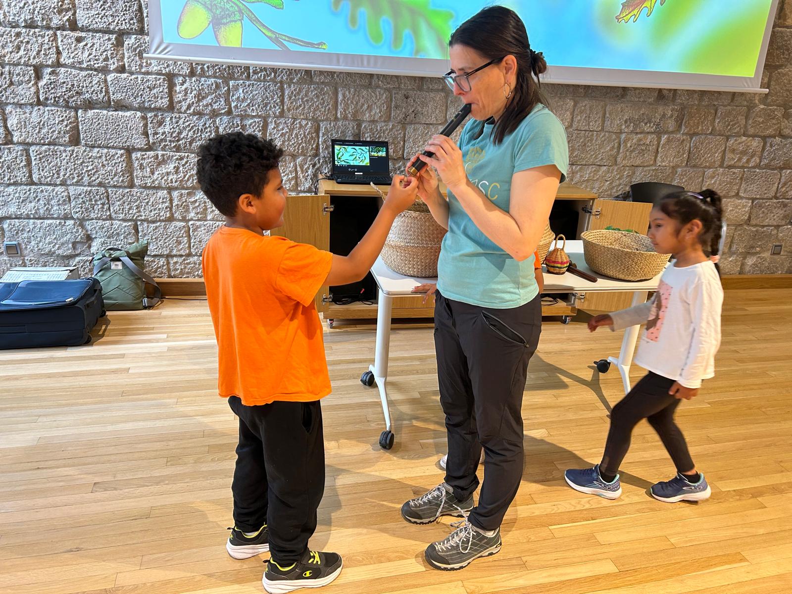 És un taller musical molt complert on es treballen els diferents sons que ens proporciona la natura, el paisatge, el bosc i el cant dels ocells. Vam aprendre els diferents cants dels ocells com el rossinyol, la merla, el pardal, el puput… tot fixant-nos en el seu cant i en les seves qualitats acústiques. Gràcies al cant d’aquests ocells vam fer exercicis d’atenció, d’escolta activa, de discriminació auditiva, de modulació de la veu, de moviment corporal… L’Ester també ens va deixar uns instruments que s’assemblaven al so dels ocells; amb ells vam composar música, som uns artistes! Ens va ensenyar la flauta d’èmbol que té un so molt característic. I també vam aprendre una cançó nova, la del Piu-Piulà!