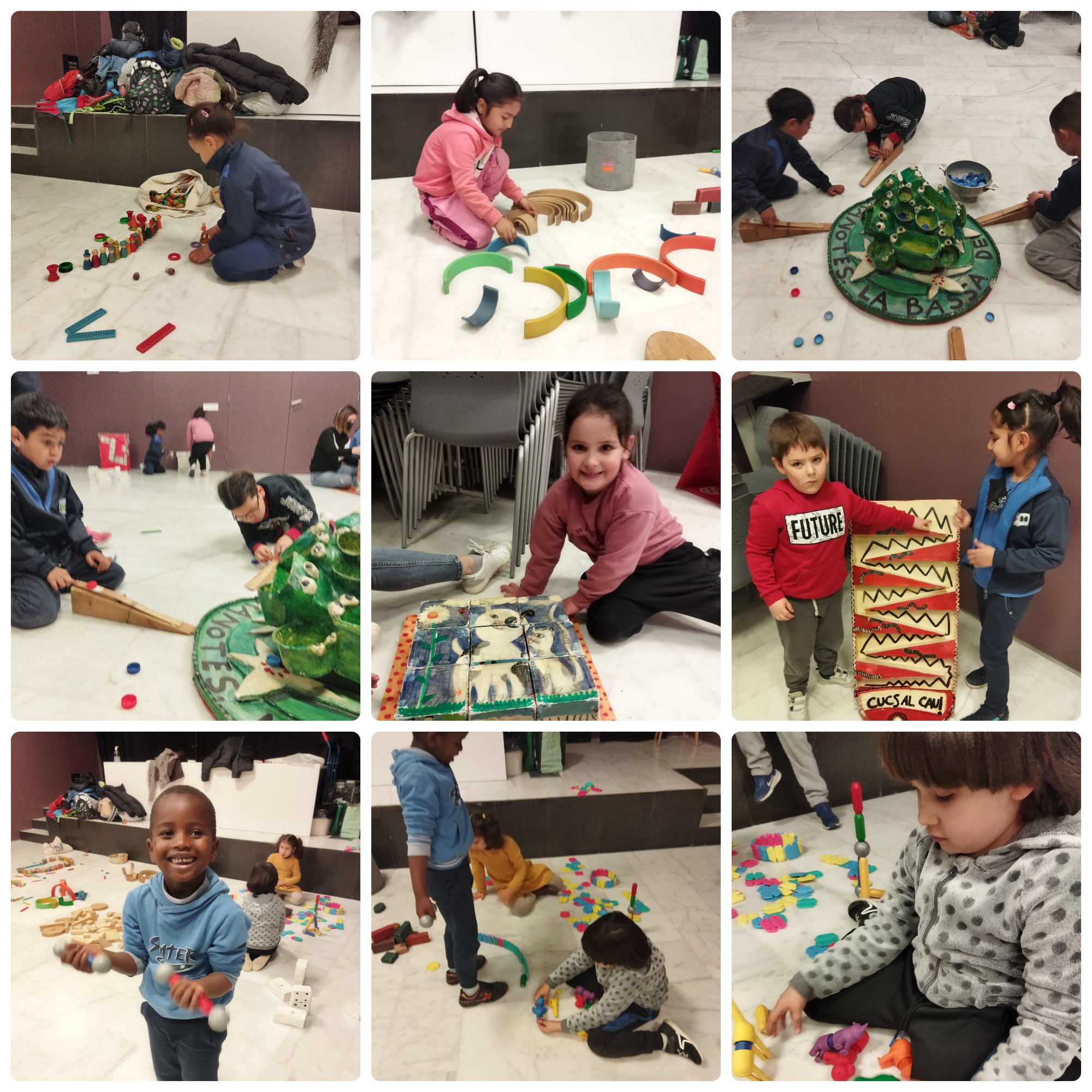 Divendres els nens i nenes de P5A vam anar d’excursió a l’ESFERA JUGANERA!. Ens ho vam passar fantàsticament, jugant amb diferents materials de CONSTRUCCIONS i JOCS, fets amb material reciclat! A les fotografies podeu veure que ens ho hem passat molt bé, fent torres, jugant al dòmino, fent joc simbòlic i jugant amb petites bales i donant menjar a les granotes! 🙂