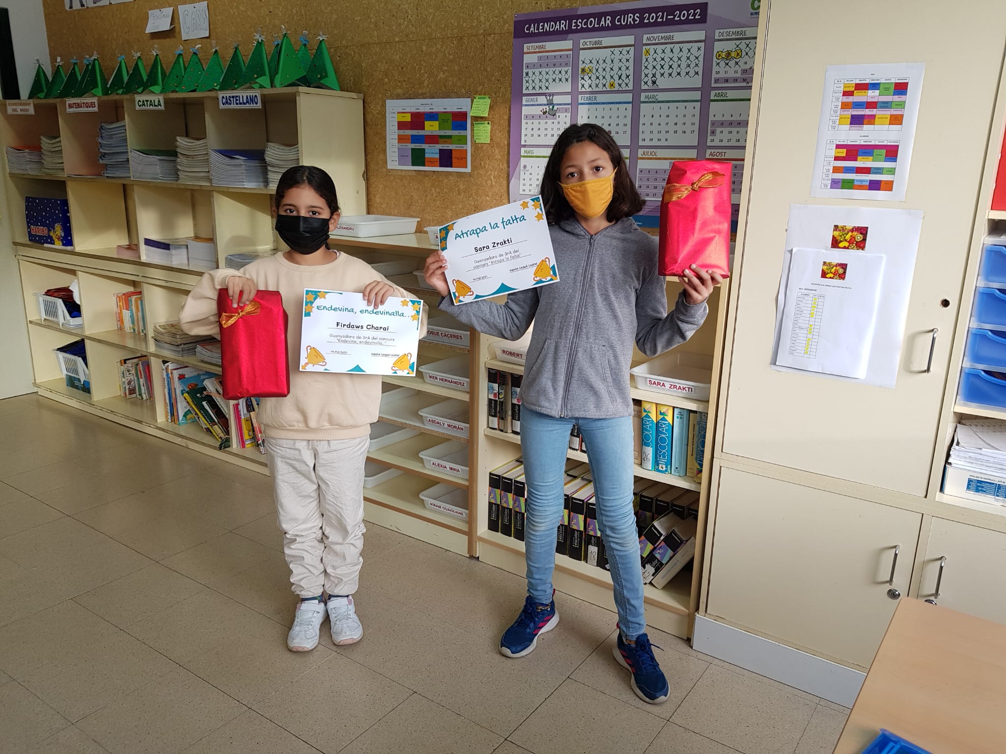 A continuació us mostrem les fotografies de tots els guanyadors i guanyadores amb els seus diplomes i obsequis. En Josué (3rB) i la Montse (5èB) recollirant els seus premis quan tornin a l’escola. Moltes felicitats a tots i totes!