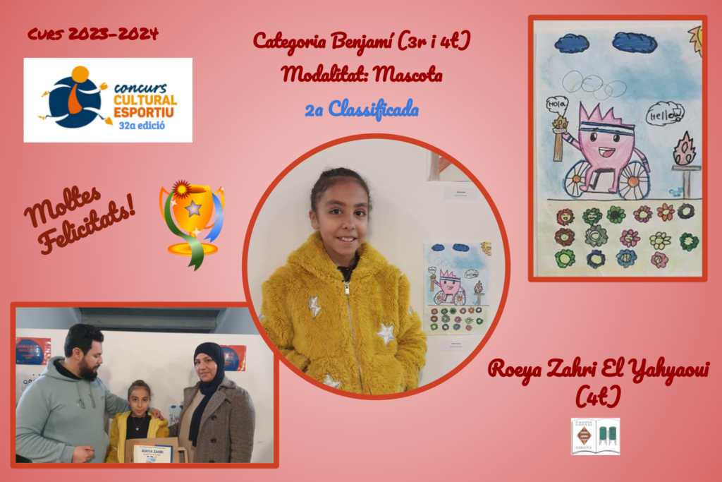 Dilluns 12 de febrer a la tarda, a la Factoria Cultural Coma Cros de Salt, es va fer el lliurament dels  guardons.  Van rebre diplomes i obsequis els 5 finalistes de cada categoria i la nostra escola va tenir una finalista de cada categoria: prebenjamí, benjamí i aleví. Tots i totes van anar molt contents i contentes acompanyats/des de les seves famílies. El nostre agraïment també a les famílies per la seva col·laboració.