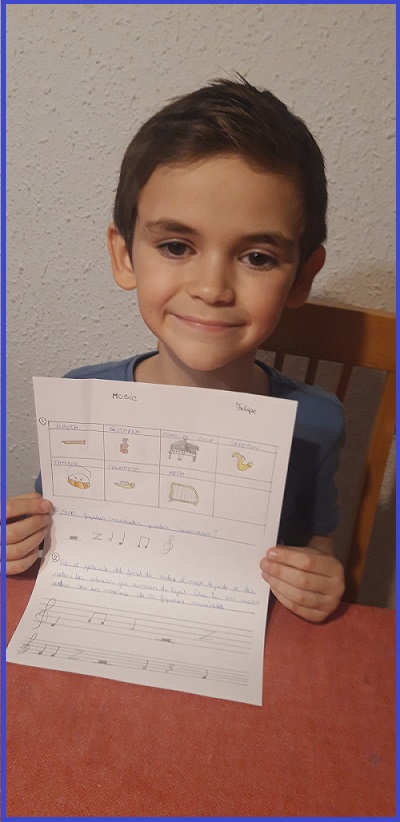 FELIPE de 3r B: Dibuixant instruments i figures rítmiques dins del pentagrama.