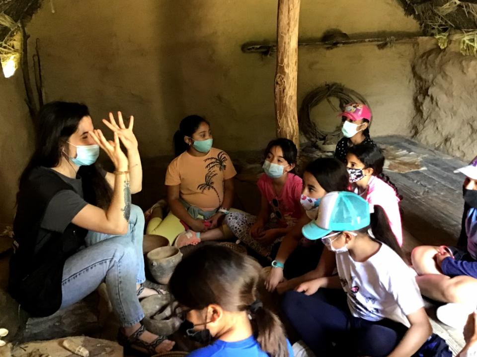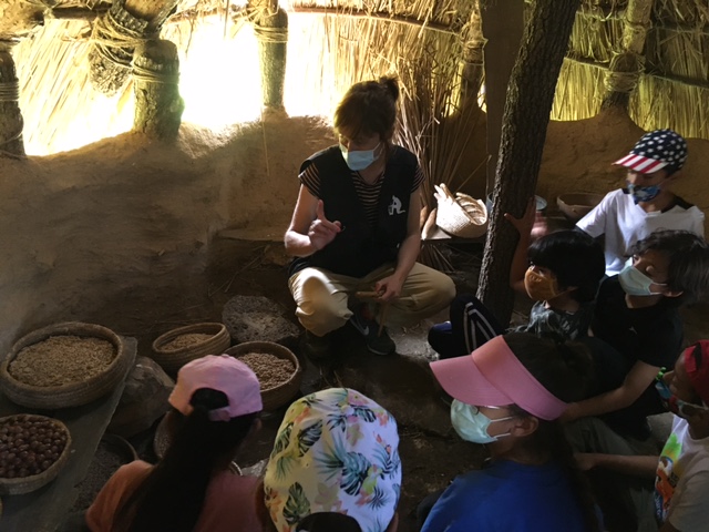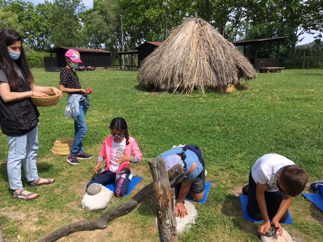 Vam poder veure les cabanes, vam moldre el gra per fer farina, vam disparar amb llances, ens explicaren els aliments que conreaven i la seva conservació, també quines eines feien servir i com feien foc.