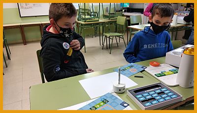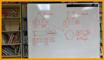 Els nens i nenes de 4t han treballat els polígons amb uns robots anomenats Matatalab. Els han programat perquè dibuixessin diferents polígons i altres figures poligonals: el triangle, el quadrat, estrelles de 5 i de 8 puntes i llaços. A partir d’aquests polígons també han deduït entre tots les ordres adequades que havien de donar al seu Matatalab perquè dibuixés un rectangle i un pentàgon.