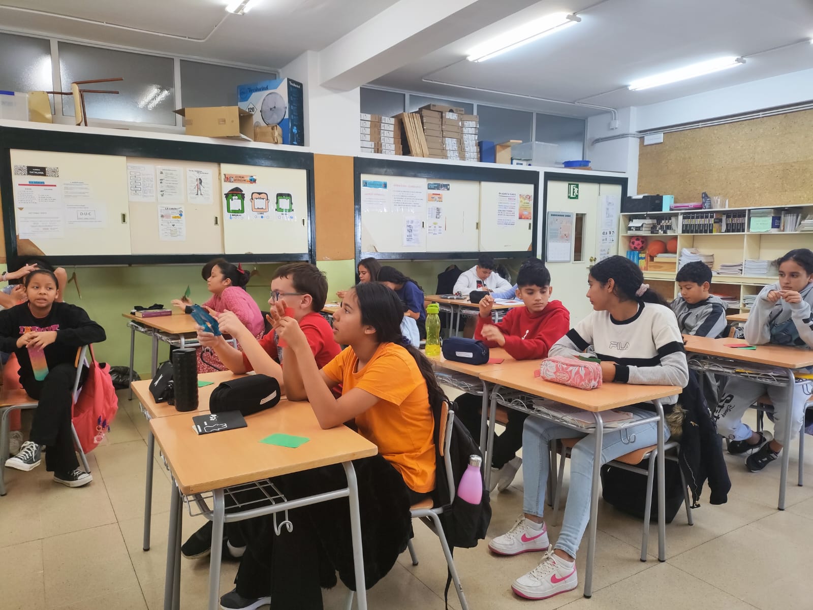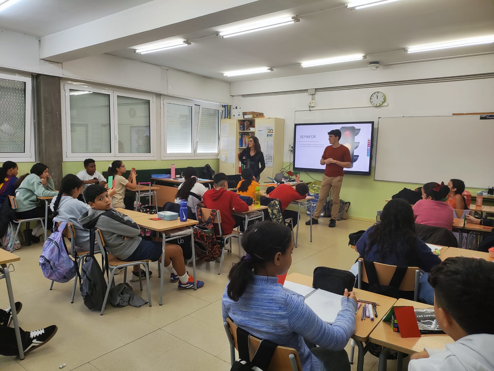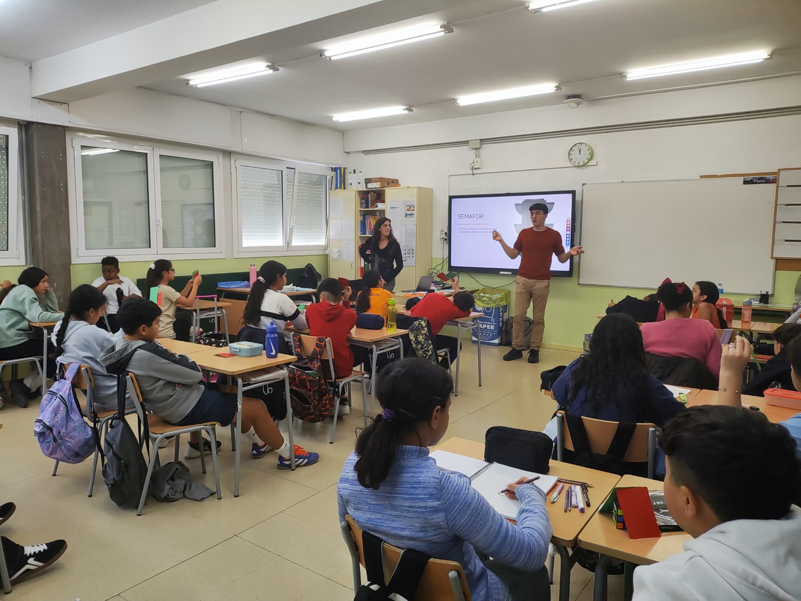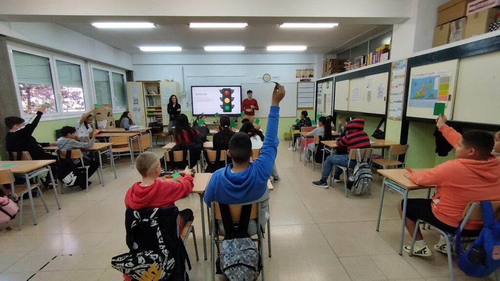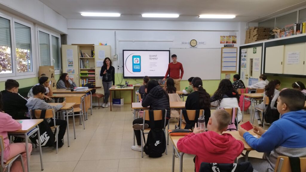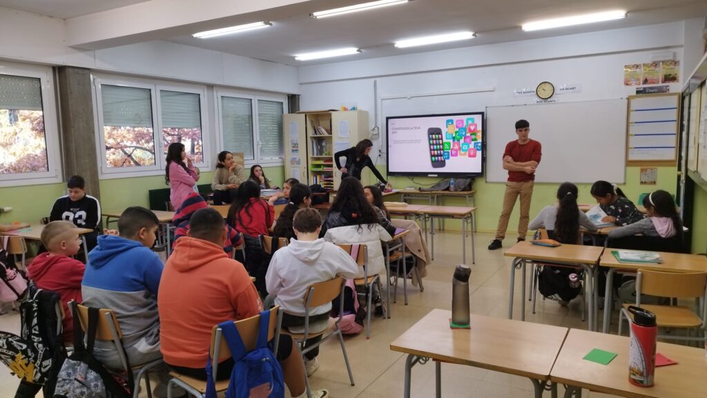 Aquest matí, a 6è, ens han vingut a fer una xerrada. Ens han parlat sobre els mòbils, els problemes que pot comportar fer-ne un mal ús i com detectar-ho. Després, hem fet una dinàmica per dissenyar possibles aplicacions que ens ajudin a controlar les hores que passem davant d’aquest aparell.