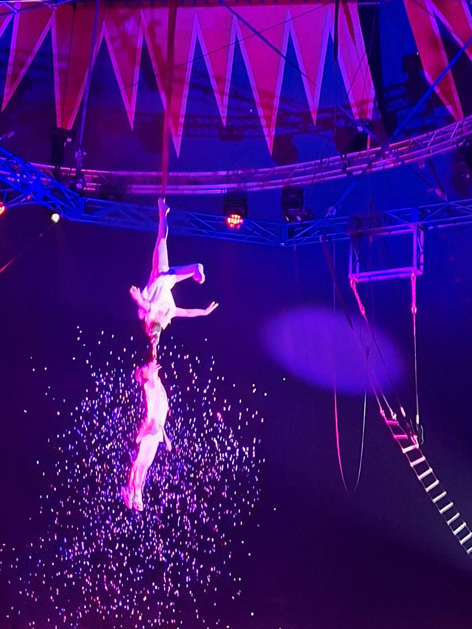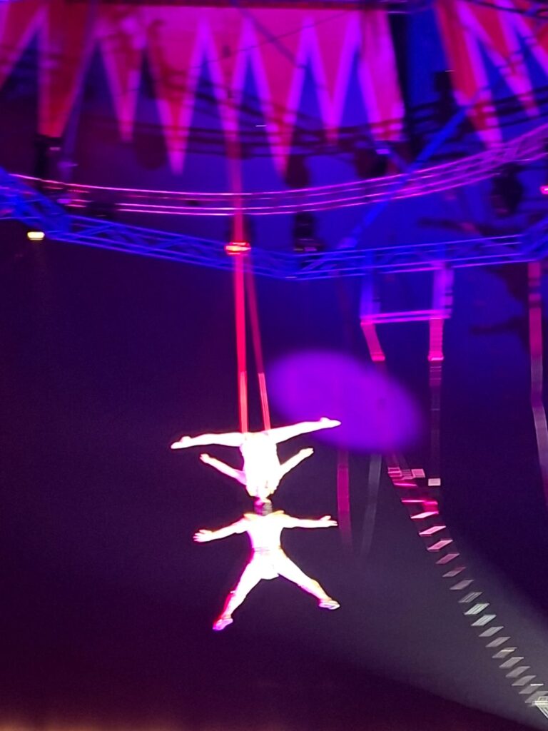 Vam riure molt amb els pallassos musicals i vam quedat bocabadats amb les acrobàcies i els malabaristes. Un dels moments més sorprenents va ser quan vam veure les acrobates de suspensió pels cabells que feien figures espectaculars a l’aire!