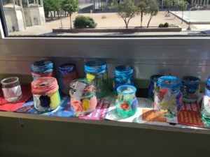This week we have been painting glass jars with third grade students. We painted flowers related to the Spring. Look at them!
