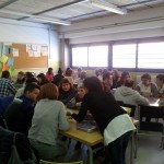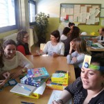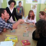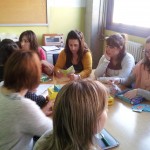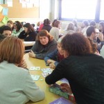 La mare de dos alumnes de l’escola, la Roser, ha vingut dos dies a fer-nos formació en jocs cooperatius. Un dia va fer la formació als mestres i l’altre a les mares delegades del consell de participació.