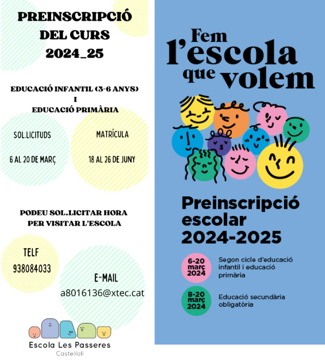 21/02/24Si voleu tenir més informació i conèixer més l’escola feu una ullada al tríptic: TRÍPTIC PREINSCRIPCIÓ