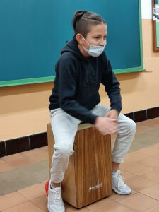 Avui, a la classe de música, l’Adonai ha portat la seva caixa, ens ha explicat com es toca i ens ha fet un petit concert.