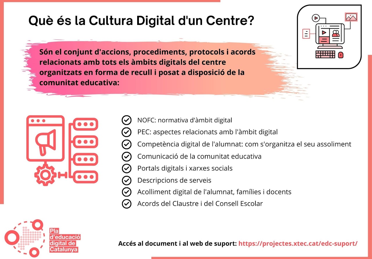 Cultura digital En aquest apartat es recullen tots els documents del centre que fan referència a aspectes de la cultura digital. D’aquesta manera, es pot tenir una visió completa de l’assoliment d’aquesta cultura pel que fa a centre.