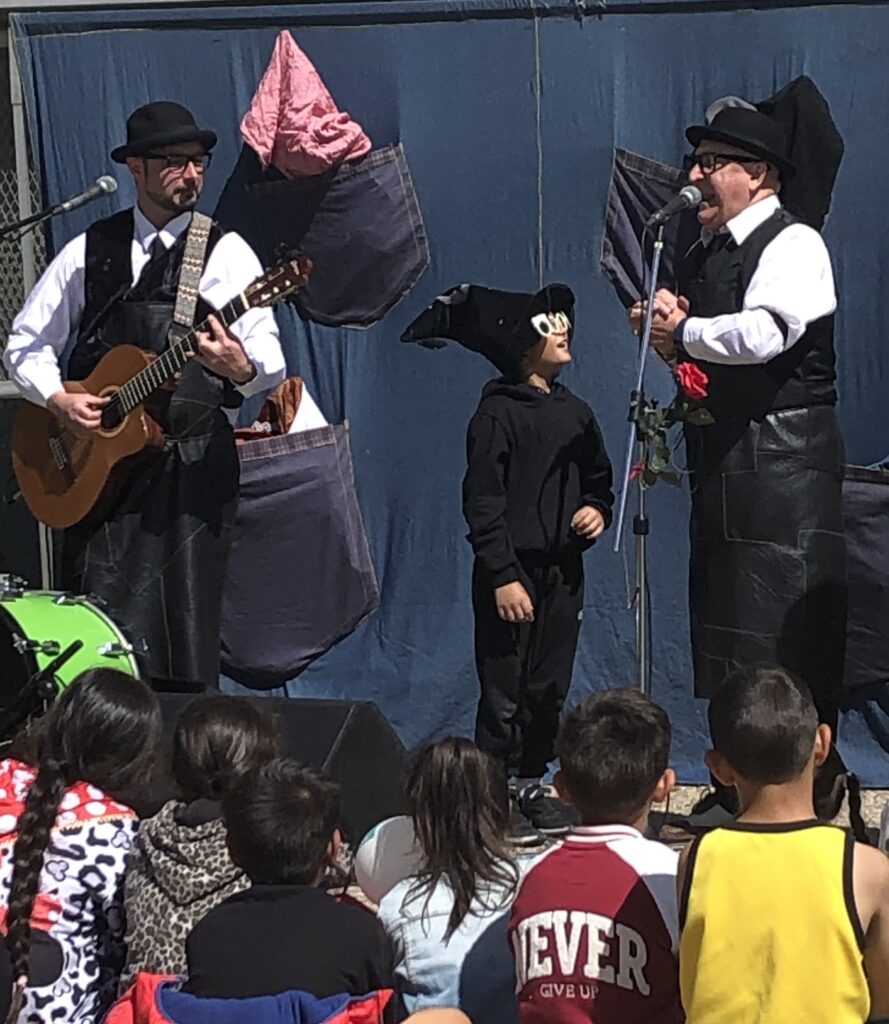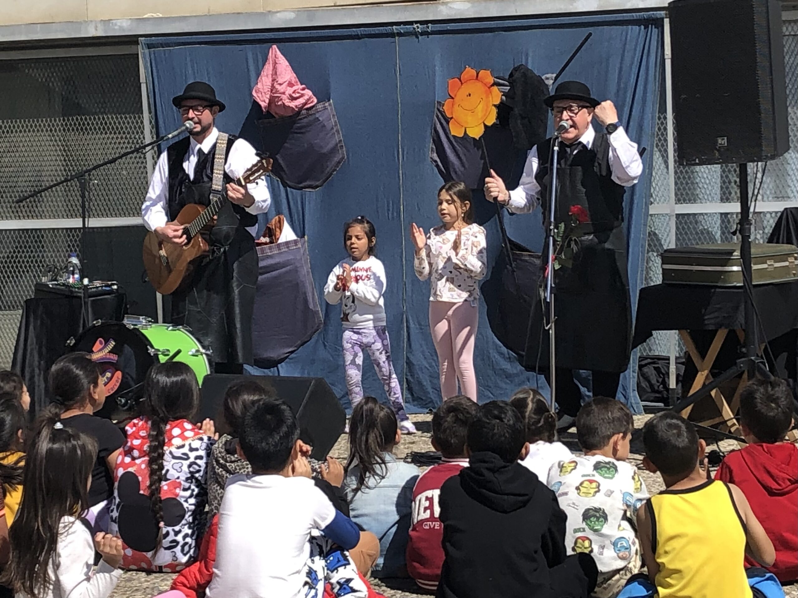 Hem començat el dia realitzant danses i cançons de Sant Jordi al pati. Tots els nens i nenes de l’escola hem ballat diverses cançons representant la llegenda que tant ens agrada. Després hem anat a visitar les paradetes de llibres i roses que hi havia a la Rambla Ferran, quin munt de llibres interessants! Ja tenim una bona llista feta! I hem acabat el matí gaudint d’un espectacle a càrrec de la companyia de teatre La Cremallera, que bé que ens ho hem passat!