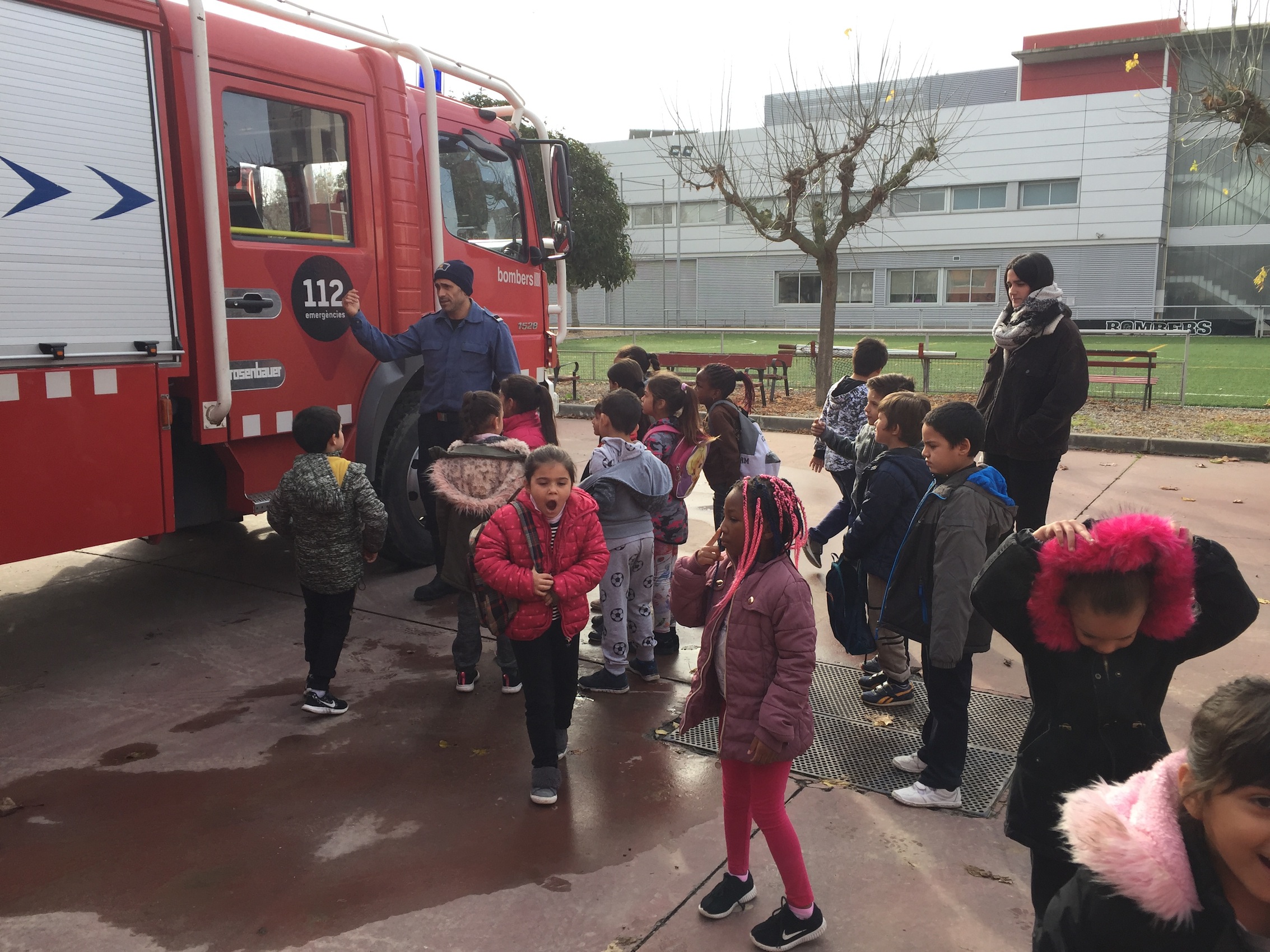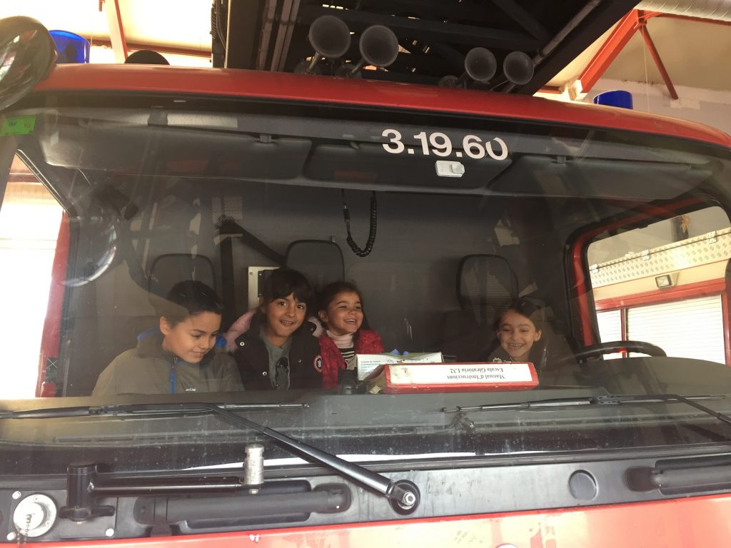 Dijous 22 de novembre els nens i nenes de 1r i 2n vam anar d’excursió al parc de bombers. Vam veure un vídeo on ens explicaven tot el que feien. També ens van ensenyar els cotxes i camions que tenen i hi vam poder pujar. Són molt alts! Tenen un camp de futbol i vam poder jugar-hi una estona i vam tenir molta sort perquè vam poder veure com aterrava un helicòpter, quin soroll que feia!