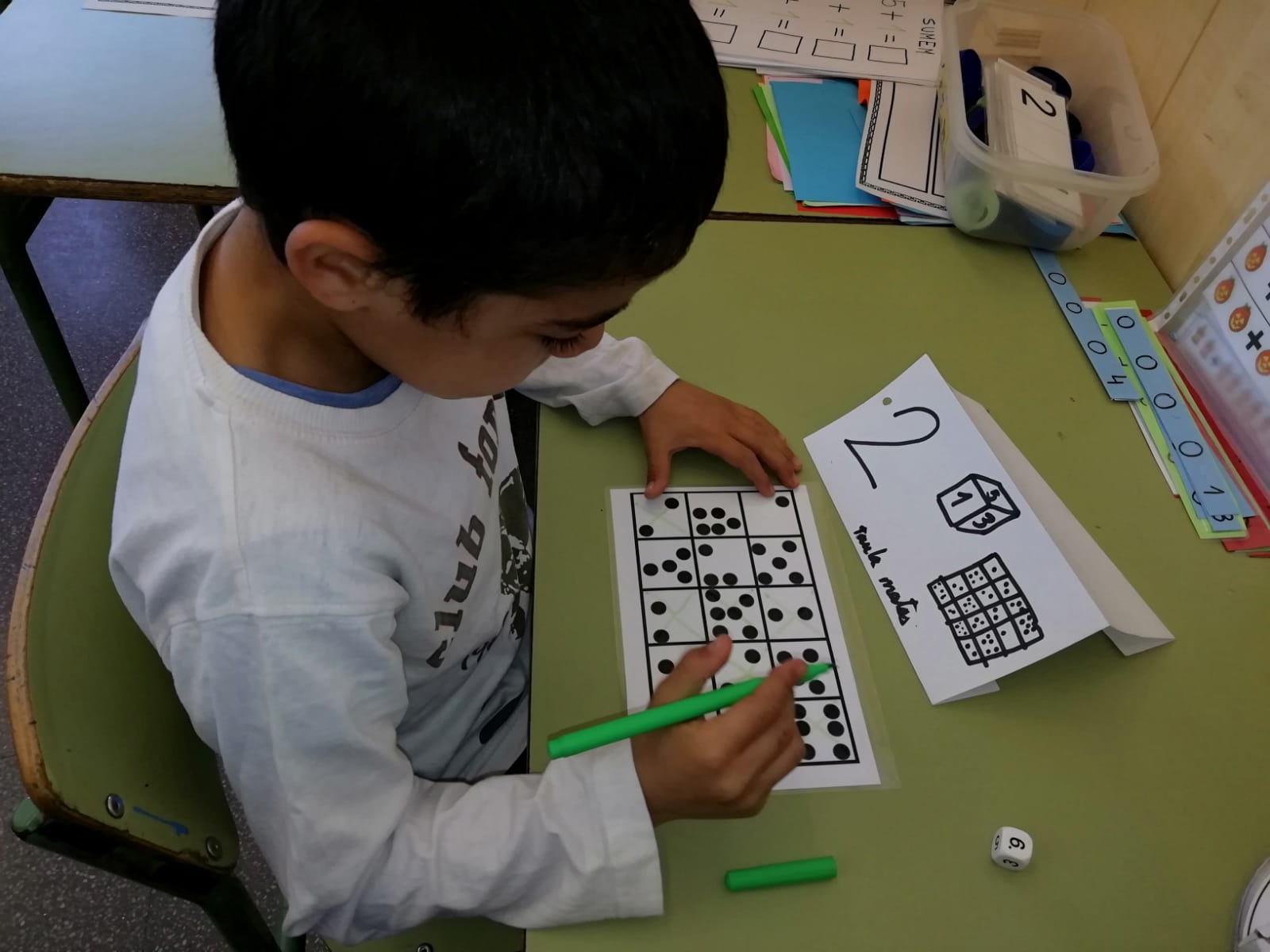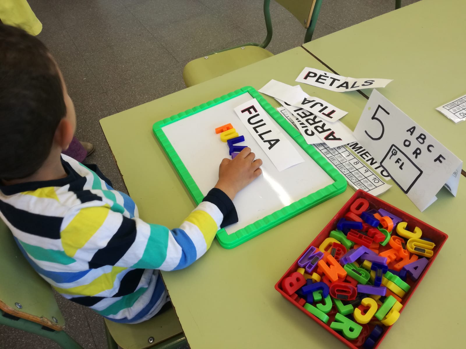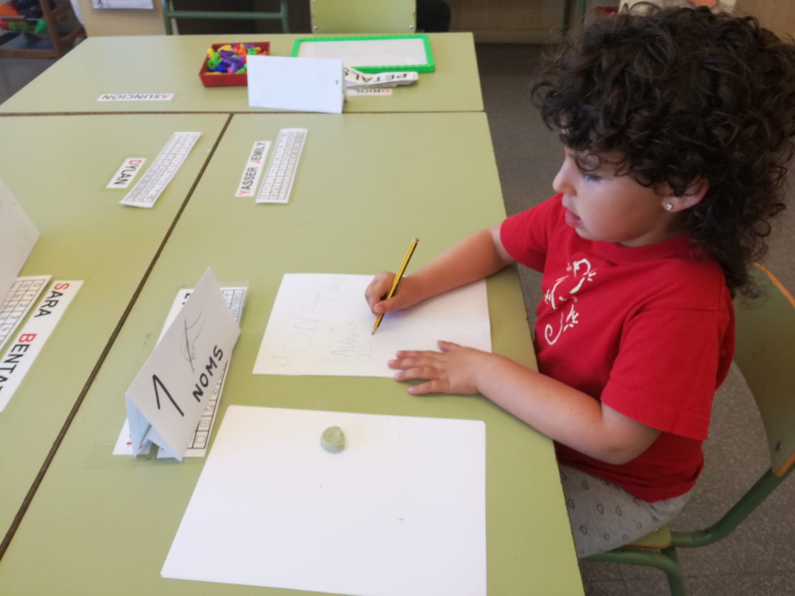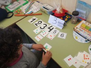 Els nens i nenes de P-4 fan una petita gimcana per treballar les matemàtiques i llenguatge verbal / escrit. Treballen de manera individual respectant cadascú el número d’activitat que li correspon. Han après molt!