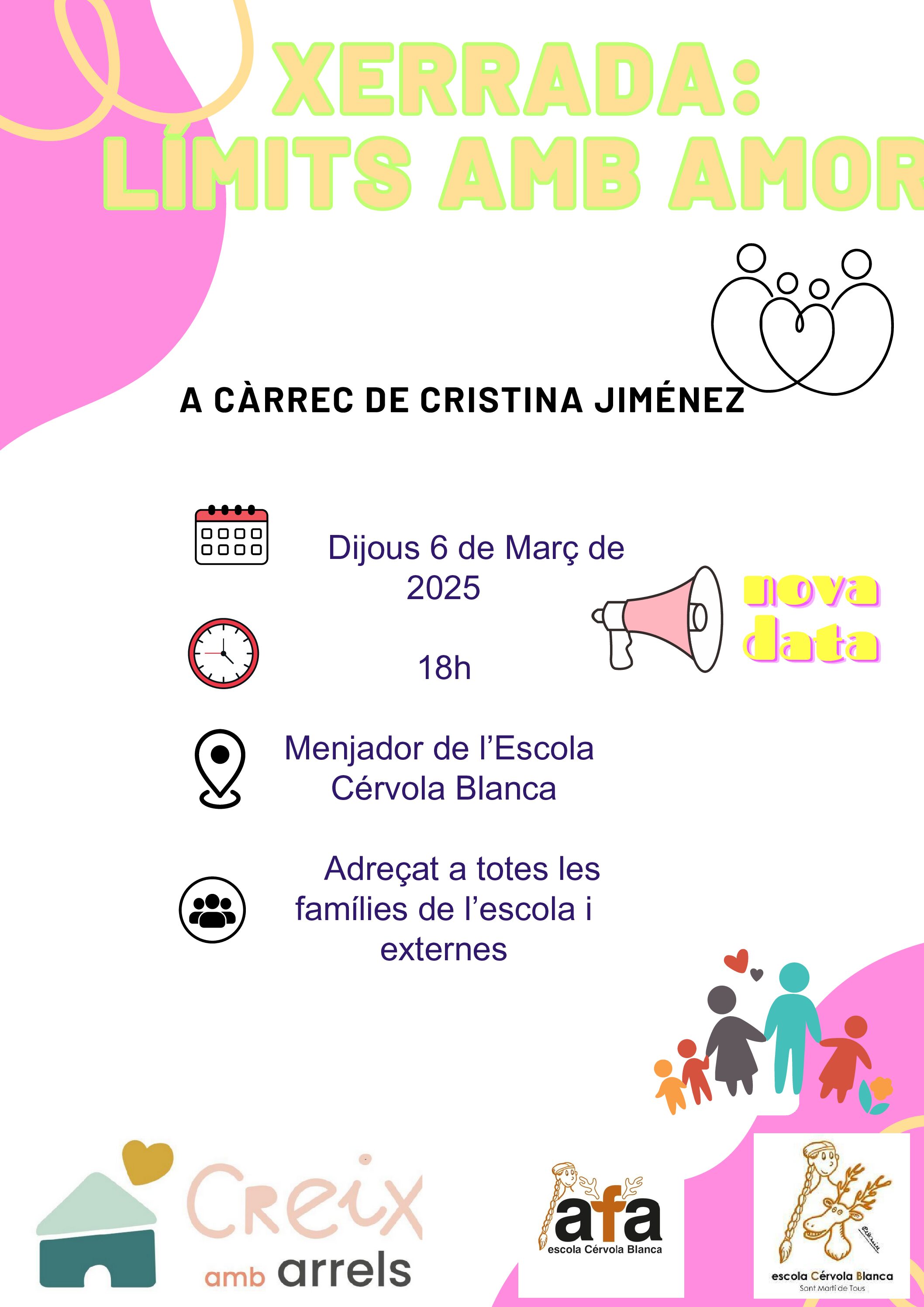 El proper 6 de març l’AFA organitza la xerrada Límits amb amor. Us hi esperem a tots!