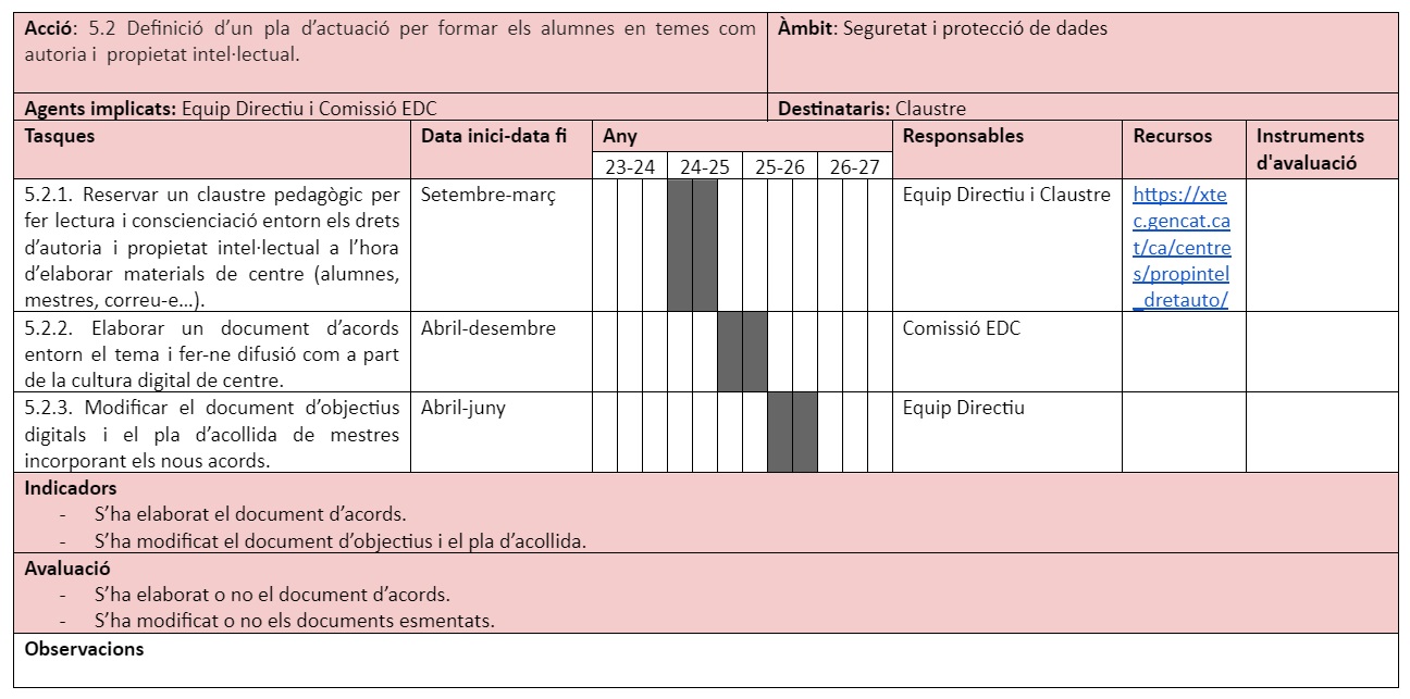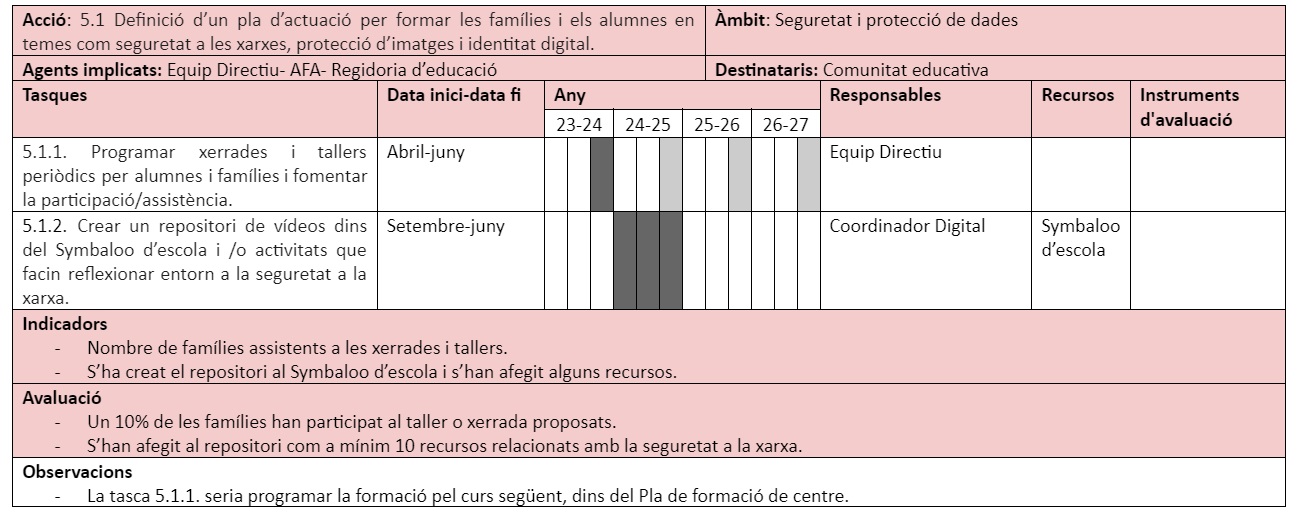 OBJECTIU: 5.Promoure la seguretat en xarxa, protecció d’imatge/dades i drets d’autoria a tota la comunitat educativa.