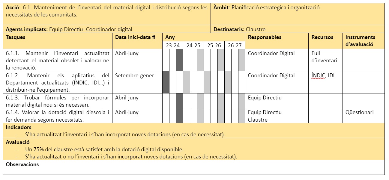 OBJECTIU: 6. Renovar periòdicament el maquinari obsolet i incorporar-ne de nou (càmeres, tablets, croma…) per garantir la dotació necessària en tots els grups.